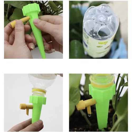 Podu laistīšanas iekārta 2 nedēļu mitrināšanai – laistītājs nodrošinās vidēji 2 nedēļu apūdeņošanu, izmantojot 1,5 litru pudeli. Ūdenī var arī viegli iebērt mēslojumu. Nav nepieciešama elektrība – ideāls risinājums cilvēkiem, kuriem patīk ceļot un kuri bieži dodas izbraucienos. Automātiskā laistītāja izmantošana palīdzēs jūsu ziediem pārdzīvot saimnieku prombūtnes periodu. Jums nav jālūdz kaimiņiem vai ģimenei laistīt augus. Vienkārši ievietojiet mitrinātāju zemē. Vienkārša uzstādīšana + krāns – vienkārši pieskrūvējiet laistītāju pie ūdens pudeles (labi, ja pudelei ir caurums), ievietojiet to zemē kopā ar augu, atveriet krānu un pēc tam ar pogu regulējiet ūdens plūsmu, kas piegādā ūdeni augam. Daudzpusīgs pielietojums – laistītāju var izmantot gan telpās, gan ārā. Tas ir lieliski piemērots arī dārzeņu, piemēram, gurķu, tomātu u.c., audzēšanai. Specifikācija – krāsa: zaļa; izmēri: 13,5 x 6 cm; svars: 9 g; svars iepakojumā: 10 g. Specifikācija Krāsa: zaļa Izmēri: 13,5 x 6 cm Svars: 9 g Svars iepakojumā: 10 g Brīdinājums Saturs: - Lietojiet paredzētajam mērķim. - Laistītājs jālieto saskaņā ar ieteikumiem par ūdens daudzumu. Pārmērīgs ūdens daudzums var izraisīt augsnes pārmērīgu slapināšanu, kas var izraisīt auga sakņu pūšanu. - Nepareiza laistītāja uzstādīšana (piemēram, pārāk ciets vai pārāk vaļīgs iestatījums) var sabojāt laistītāju vai aizsprostot ūdens plūsmu. - Laistītājs var būt periodiski jātīra, lai izvairītos no caurules vai ūdens izvadu aizsērēšanas, kas var ietekmēt tā efektivitāti. - Ūdens apūdeņošanas sistēmā jābūt tīram, lai novērstu aizsērēšanu vai apūdeņošanas mehānisma bojājumus. - Ūdens apūdeņošanas tvertnē nedrīkst stāvēt pārāk ilgi, lai novērstu baktēriju, sēnīšu vai aļģu augšanu. - Apūdeņošanas sistēmām, ko ziemā izmanto ārā, pastāv sala bojājumu risks.