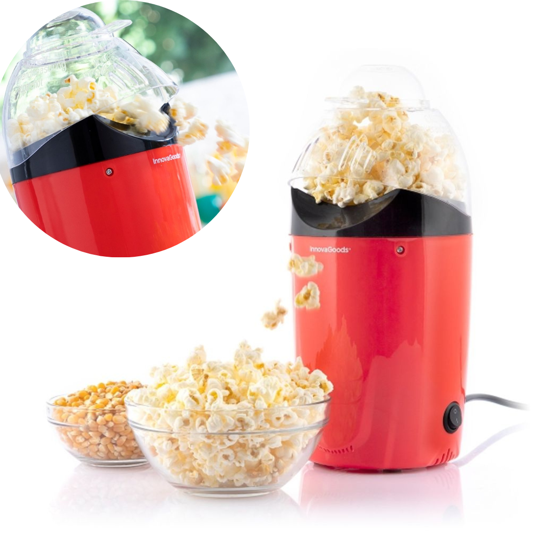 Karstā gaisa popkorna automāts, kas ir ideāli piemērots ģimenei, lai ērti un tikai dažu minūšu laikā izbaudītu gardu un veselīgu mājās gatavotu popkornu. Tas darbojas, izmantojot karstu gaisu, un nav nepieciešama eļļa vai sviests, tāpēc rezultāts ir veselīgāks, dabiskāks un bez taukiem. Automāta vieglais, kompaktais dizains ļauj to ērti uzglabāt, aizņemot ļoti maz vietas. Tam ir viena poga ieslēgšanai vai izslēgšanai, padarot tā lietošanu ļoti vienkāršu un ērtu. To ir arī viegli tīrīt. Augšējā vākā ir maza mērkarote, lai tajā varētu ievietot precīzu popkorna sēklu daudzumu, ko var pagatavot vienā reizē. Ierīce ir aprīkota ar drošības termostatu, kas to īslaicīgi izslēdz, lai novērstu pārkaršanu. Ar šo oriģinālo popkorna automātu bērni un pieaugušie baudīs tikko pagatavotu gardu popkornu ballītēs un svinībās vai citos īpašos gadījumos, skatoties savus iecienītākos seriālus vai filmas utt.