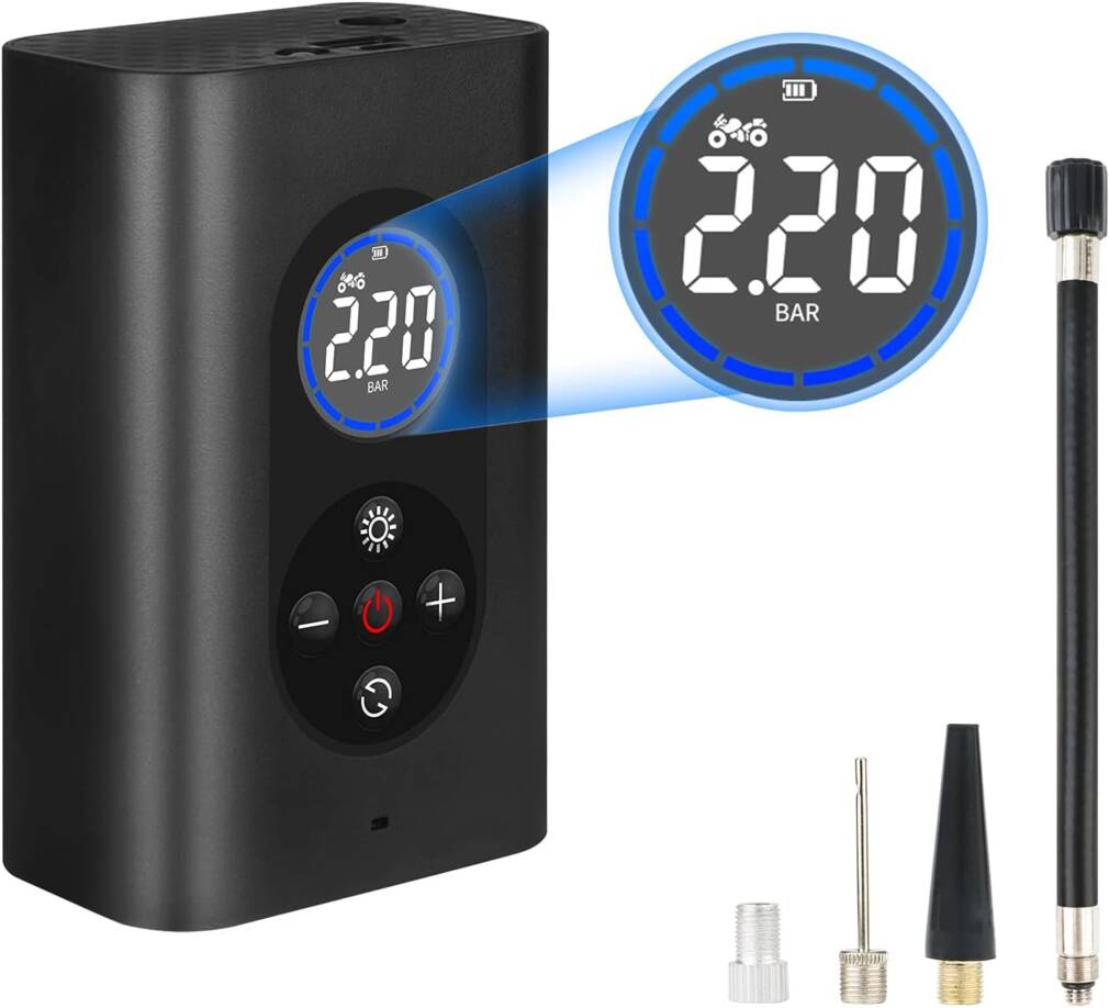 Atvadieties no manuālās sūknēšanas, izmantojot viedo bezvadu gaisa sūkni — jūsu labāko pārnēsājamo risinājumu riepu, bumbiņu un cita veida piepūšanai. Šis kompaktais un efektīvais gaisa sūknis apvieno jaunākās tehnoloģijas ar lietotājam draudzīgu dizainu, padarot to par būtisku rīku jūsu automašīnai, mājām un āra piedzīvojumiem! Iepriekš iestatīts riepu spiediens ar automātiskās apturēšanas funkciju: iestatiet vēlamo riepu spiedienu, un sūknis automātiski apstājas, kad tas tiek sasniegts, novēršot pārmērīgu spiedienu un nodrošinot drošību. Digitālais displejs ar LED fona apgaismojumu: lielais, viegli nolasāmais digitālais ekrāns parāda reāllaika spiediena rādījumus, nodrošinot precīzu piepūšanos katru reizi. Universāls un daudzfunkcionāls: ir aprīkots ar dažādām sprauslām, kas padara to lieliski piemērotu automašīnu riepu, velosipēdu riepu, sporta bumbiņu un piepūšamo rotaļlietu piepumpēšanai. Iebūvēts LED apgaismojums: aprīkots ar jaudīgu LED gaismu, tas atvieglo riepu piepumpēšanu naktī vai tumšos apstākļos. Uzlādējams un pārnēsājams: ar iebūvēto uzlādējamo akumulatoru šo sūkni var uzlādēt, izmantojot USB-C, ļaujot to paņemt līdzi jebkur, neuztraucoties par vadiem vai strāvas kontaktligzdām. Kompakts dizains: šis gludais un vieglais gaisa sūknis ir izveidots tā, lai viegli ietilptu jūsu cimdu nodalījumā, mugursomā vai instrumentu kastē, un tas ir gatavs jums palīdzēt, kad vien tas ir nepieciešams. TEHNISKIE PARAMETRI: Ieejas spriegums: 5V/2A Darba strāva: 1-5A Maksimālā strāva: ≤5A Strāva bez slodzes: ≤2A Ar USB uzlādi: 5V 1A Gaisa efektivitāte: uzlādējiet 1,95 kalnu riepas uz 2 minūtēm Darba temperatūra: -20°C – 70°C Trokšņa decibeli: 60-80 decibeli Uzlādes metode: USB-C Uzlādes laiks: apmēram 3 stundas Sasniedzamais spiediens: 150 PSI/10,3 BAR/990KPA/10,5KG/CM Produkta izmērs: 120*78*50mm KOMPLEKTS IEKĻAUJ: 1x M8 gaisa sūkņa saimnieks 1x Piepūšamā caurule Piepūšamie piederumu savienotāji USB uzlādes kabelis Lietotāja rokasgrāmata