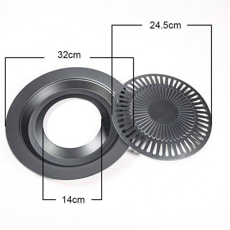 Apakšējā daļā savāc taukus drenāžas kanālā – atrodas ārējā gredzenā ar caurumu centrā, pa kuru plūst siltums