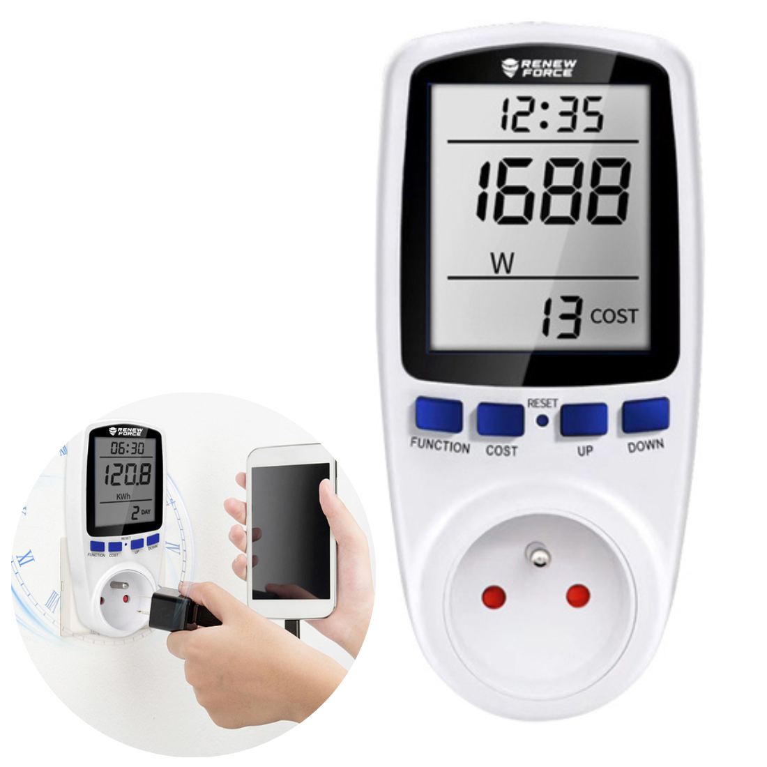 Pateicoties ērti lietojamam enerģijas patēriņa skaitītājam, jūs varat viegli pārbaudīt, kuras ierīces jūsu mājās patērē visvairāk elektrības. Ierīce ļauj samazināt enerģijas patēriņu un tādējādi arī pozitīvi ietekmēt elektrības rēķinu samazināšanu.