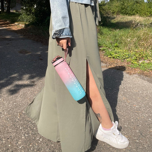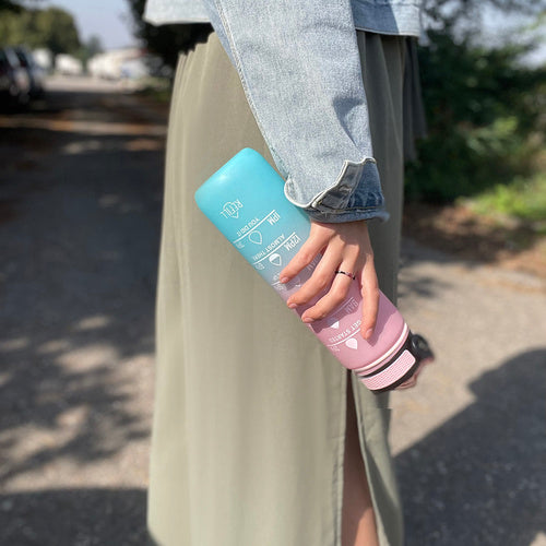 Motivējoša ūdens pudele no augstas kvalitātes materiāla - 1 l motivējoša pudele ir izgatavota no izturīga, veselībai droša PP (polipropilēna) materiāla, kas padara to vieglu un vienlaikus triecienizturīgu. Iemutnis ir izgatavots no mīksta silikona, kas ir drošs zobiem un smaganām, kas nodrošina komfortu dzeršanas laikā. Pudele ir pasteļrozā un zilā krāsā, kas piešķir tai estētisku un modernu izskatu, piemērota ikdienas lietošanai. Iekšpusē ir gara, noņemama caurule, pateicoties kurai, lai dzertu, pudele nav jānoliec - vienkārši iesūc šķidrumu caur iemutni. Pudeli var lietot temperatūrā no -20 °C līdz 80 °C. Drošība un hermētiskums - pudele ir aprīkota ar inovatīvu pretizliešanas sistēmu. Silikona blīve zem vāciņa un ciešs aizvērums pasargā no noplūdes, pat ja pudele apgāžas vai tiek ievietota somā. Aizvēršanas mehānisma bloķēšanas tapa ir uzticama - jums tā ir jānoņem un pēc tam jānospiež poga, lai atvērtu pudeli, kas pasargā no nejaušas noplūdes. Tas padara pudeli par lielisku risinājumu aktīviem cilvēkiem, bērniem un tiem, kas bieži ceļo. Praktiska un motivējoša — pudelei ir gradācijas gan mililitros (līdz 1000 ml), gan uncēs (līdz 32 uncēm), kas ļauj viegli izsekot ūdens uzņemšanai visas dienas garumā. Otrajā lapā atradīsiet stundu skalu (no rīta līdz vakaram), kas atvieglo apūdeņošanas plānošanu. Papildu motivējoši saukļi palīdz uzturēt veselīgus ieradumus dzert pareizu ūdens daudzumu dienas laikā, atgādinot regulāri mitrināt ķermeni. Pudeli ir viegli tīrīt, kas nodrošina pareizu higiēnu, un, pateicoties noņemamajam salmiņam, to ir ērti lietot. Piederumi un lietošanas ērtums — pudelei ir ērta galvas saite, kas izgatavota no PP un atrodas zem vāciņa, ar praktisku rokturi, kas ļauj ērti turēt pudeli vai pakārt to, piemēram, uz mugursomas. Tas ir īpaši noderīgi fizisko aktivitāšu, ceļojumu vai ceļojumu laikā. Turklāt komplektā ietilpst krāsainas uzlīmes, kuras var izmantot, lai personalizētu pudeli, piešķirot tai individuālu raksturu. Šāds komplekts padara pudeli ne tikai praktisku, bet arī par estētisku aksesuāru, kas ir ideāli piemērots gan pieaugušajiem, gan bērniem. Pudeles specifikācija — krāsa: rozā zila; pārklājuma veids: matēts; Materiāls: PP, silikons; iemutnis: jā; rokturis: jā; darba temperatūra: no -20 līdz 80 grādiem pēc Celsija; tilpums: 1 l; izmēri: 29 x 7,5 cm; svars: 0,17 kg; svars iepakojumā: 0,23 kg. Pudeles specifikācija: krāsa: rozā, zila; pārklājuma veids: matēts; Materiāls: PP, silikons; iemutnis: jā; rokturis: jā; darba temperatūra: no -20 līdz 80 grādiem pēc Celsija; tilpums: 1 l; izmēri: 29 x 7,5 cm; svars: 0,17 kg; svars iepakojumā: 0,23 kg. Komplektā ietilpst: pudele ar labākajām uzlīmēm; brīdinājuma saturs: - lietot paredzētajam nolūkam. - neglabāt aizdegšanās avotu tuvumā. - nepakļaut ekstremālām temperatūrām. - regulāri uzturēt pudeli tīru. - nemazgāt pudeli trauku mazgājamā mašīnā.