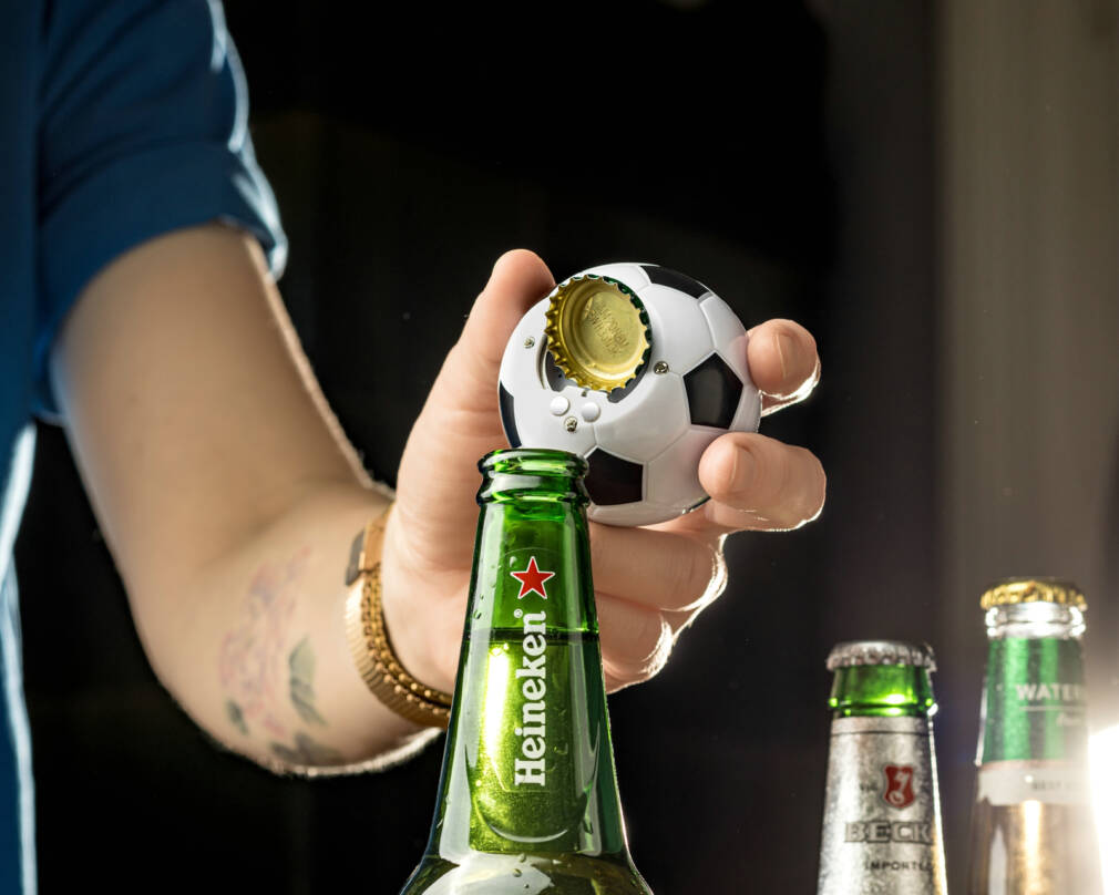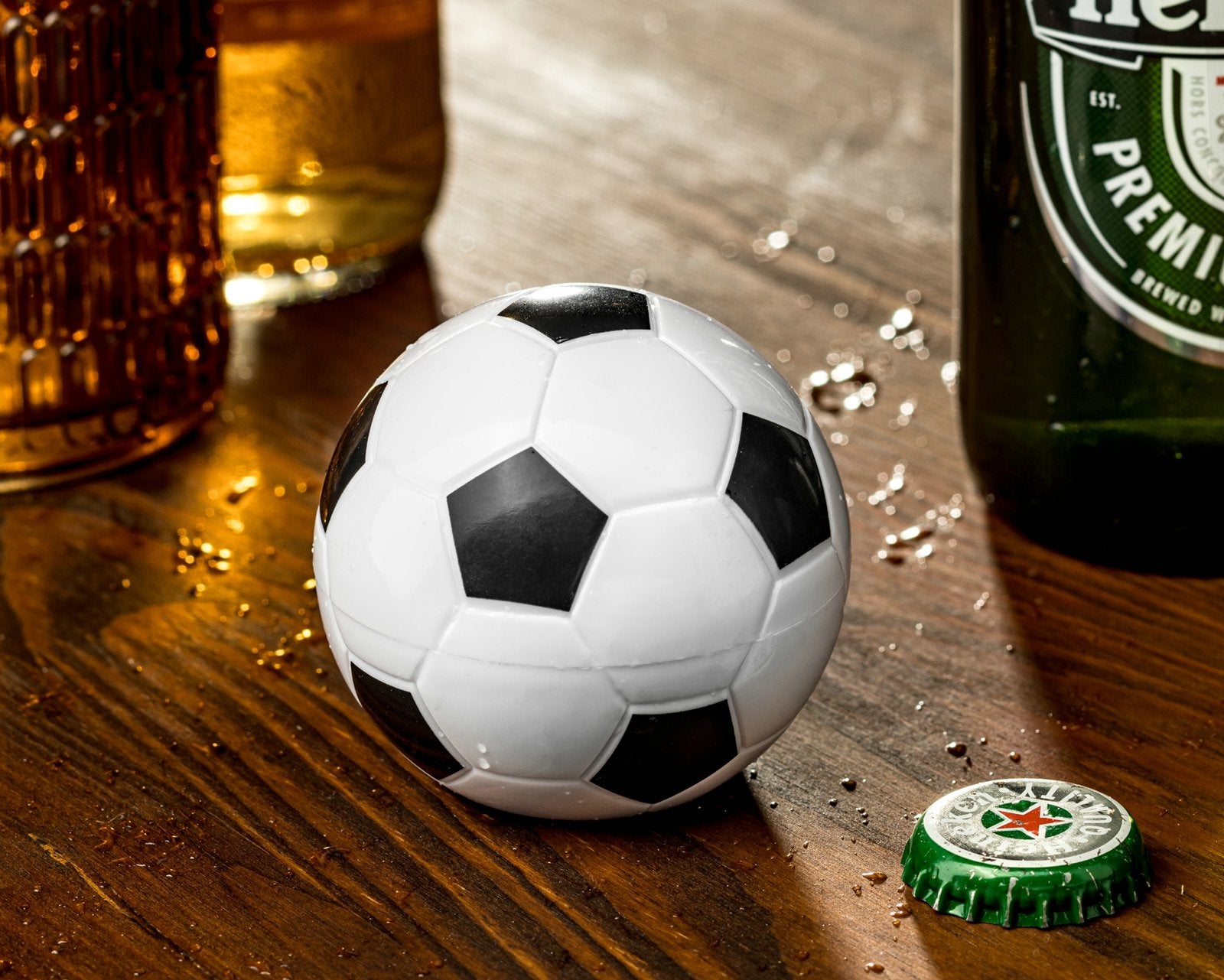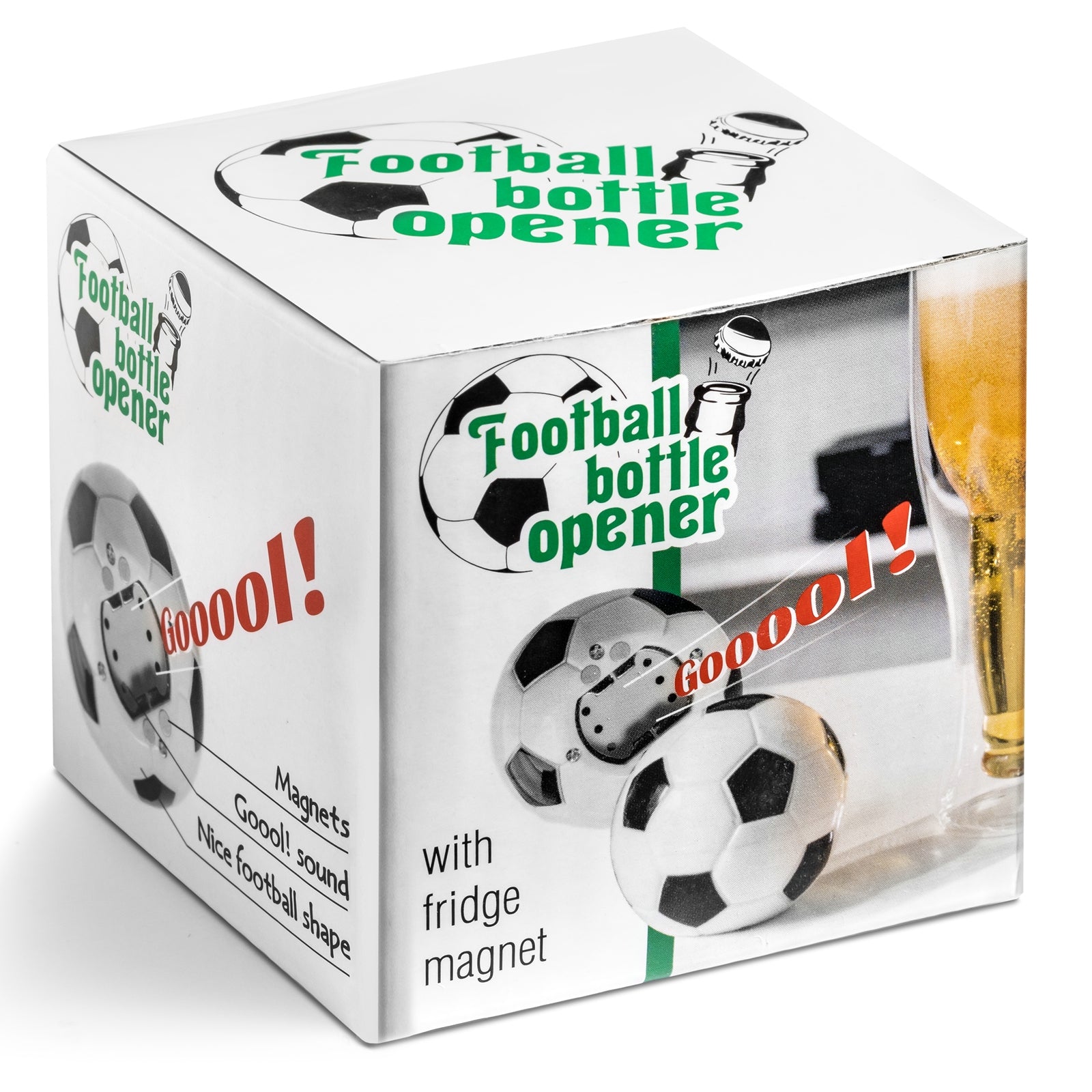 Lieliska dāvana visiem futbola faniem - pudeļu attaisāmasi ar magnētu ledusskapim un skaņas efektu futbola bumbas izskatā. Iebūvēta īstas balss mikroshēmas, var izdalīt spilgtu emocionālu saucienu "Goooooooooooooooal", kad atverat pudeli. Spēcīgi magnēti uz pamatnes, var pielīmēt arī uz ledusskapja, kad to neizmantojat.