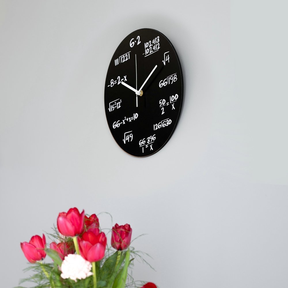 Sienas pulkstenis ar matemātiskām formulām, melns