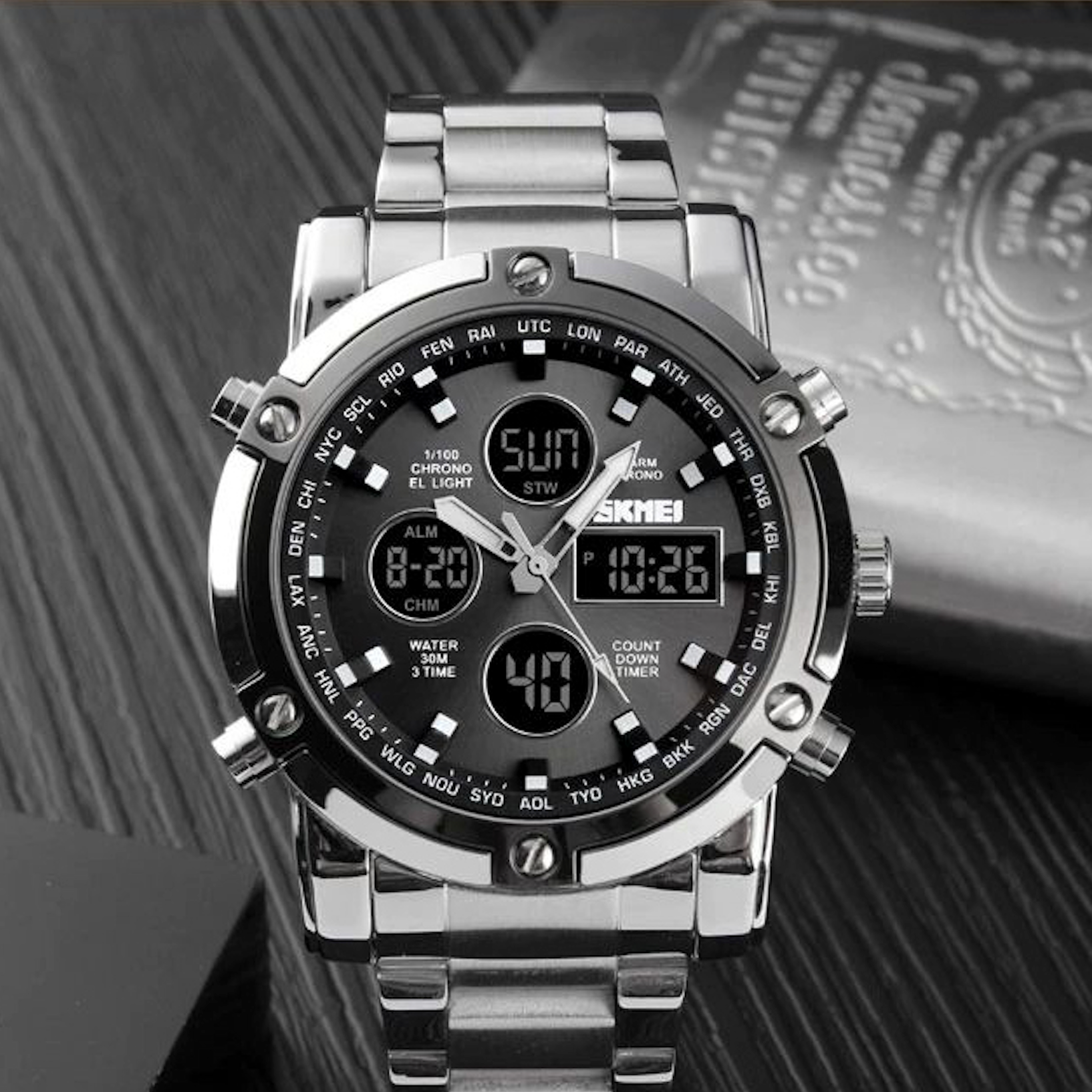 Piedāvājam unikālu SKMEI pulksteni vīriešiem. Tas ir elegants modelis ar daudzām funkcijām, kuras novērtēs tie, kuri vēlas, lai pulkstenis ne tikai rādītu pareizo laiku.