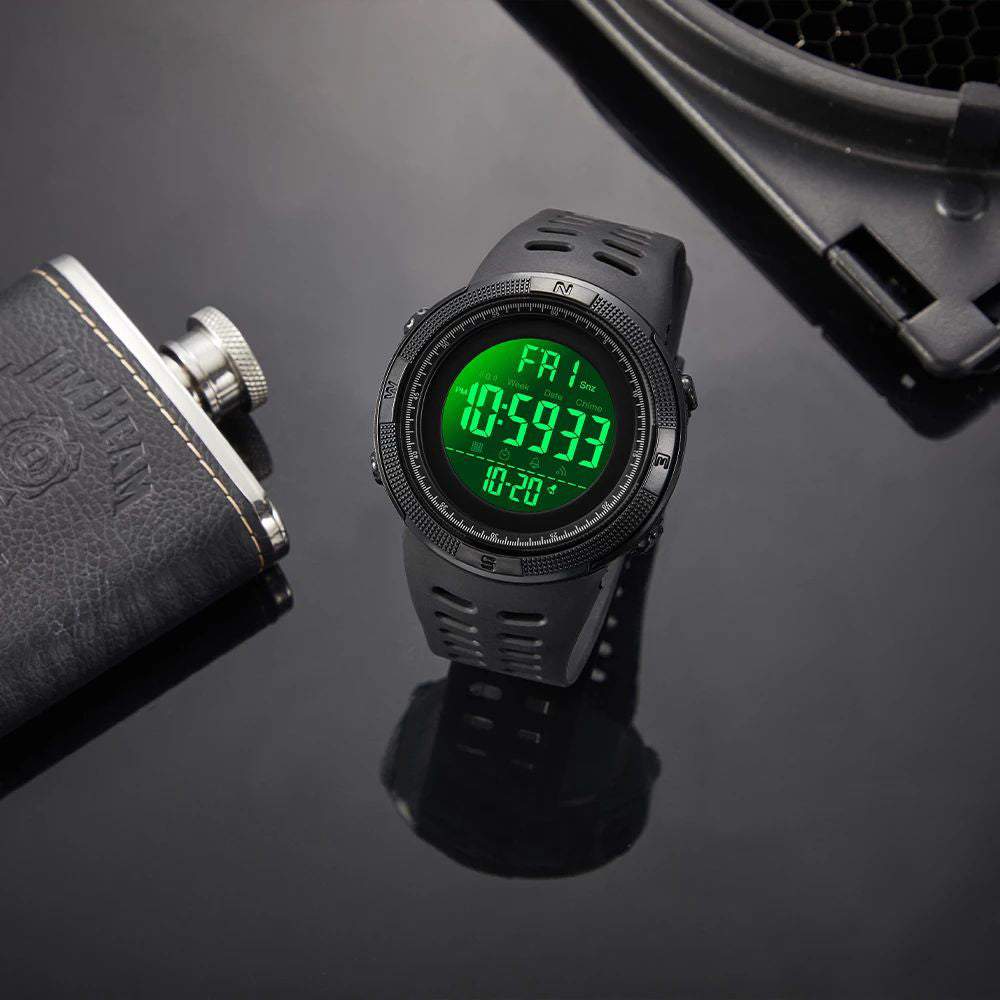Pulkstenis izgatavots ar pienācīgu rūpību par īstiem vīriešu aksesuāru cienītājiem. Klasiskā melna kombinācija ar pelēkiem toņiem padara to ārkārtīgi stilīgu, neskatoties uz tā sportisko raksturu. Gumijas-silikona siksna un kvalitatīvi izgatavots korpuss nodrošina augstu valkāšanas komfortu. Ciparnīca skaidri parāda visus datus, un maigi zaļā luminiscējošā spuldze ļauj visu redzēt naktī un piešķir elektroniskajiem pulksteņiem raksturīgo šarmu.