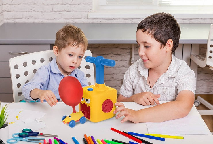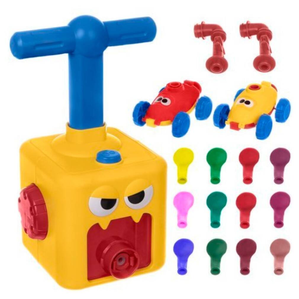 skatīties, kā rotaļu automašīnas tiek attālinātas, izmantojot balona gaisu. Šī