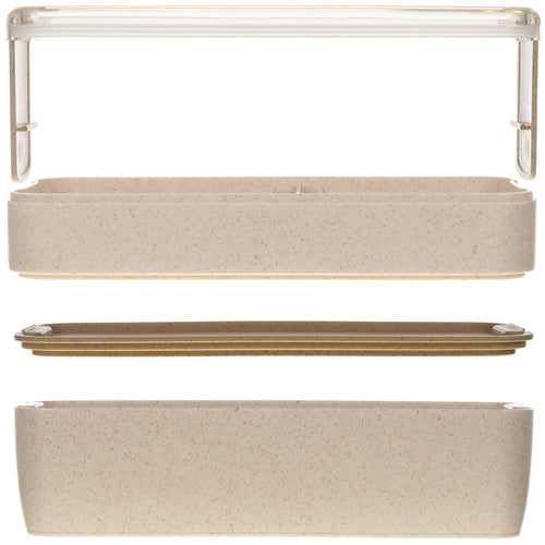 Brokastu un vakariņu trauks, pusdienu kaste + galda piederumi, augstas kvalitātes pārtikas materiāli - brokastu trauks (pusdienu kaste) ir izgatavots no ekoloģiskiem un veselībai drošiem pārtikas materiāliem, piemēram, kviešu salmiem. Šis materiāls ir ne tikai videi draudzīgs, bet arī izturīgs, noturīgs pret bojājumiem un viegli tīrāms. Turklāt, pateicoties dabisko materiālu izmantošanai, pusdienu kaste ir viegla un ērti pārnēsājama, padarot to par ideālu risinājumu ikdienas maltītēm darbā, skolā vai ceļojumos. Funkcionāls sadalījums divos traukos - pusdienu kaste sastāv no diviem atsevišķiem traukiem, kas ļauj uzglabāt dažādus pārtikas produktus, tos nejaucot. Apakšējais trauks ar 400 ml tilpumu ir ideāli piemērots lielākiem ēdieniem, piemēram, salātiem vai pamatēdieniem. Augšējā daļā, kas atdalīta ar paplāti, atrodas mazāks trauks ar 350 ml tilpumu. Pateicoties šim izvietojumam, ēdieni saglabājas svaigi, un to garša un aromāts nesajaucas viens ar otru. Paplāte, kas atdala traukus, kalpo arī kā šķīvis. Augšējais trauks ar noņemamu atdalītāju - augšējais trauks ar 350 ml tilpumu ir aprīkots ar noņemamu šķērsvirziena atdalītāju, kas ļauj sadalīt telpu divos papildu segmentos, piemēram, dārzeņiem un augļiem. Caurspīdīgs vāks, izgatavots no izturīga PP materiāla, ļauj ātri ieskatīties pusdienu kastes saturā, to neatverot, kas ir ārkārtīgi praktiski, īpaši darbā vai skolā. Tvertne ir piestiprināta ar izturīgām sprādzēm abās pusēs, kas droši savieno abus līmeņus, nodrošinot hermētiskumu un drošību transportēšanas laikā. Funkcionāli galda piederumi - komplektā ietilpst arī ekoloģiski galda piederumi, kas izgatavoti no kviešu salmiem. Karote un dakša ir praktiskas un izturīgas, un dakšas viļņotā mala kalpo kā nazis, kas palielina komplekta funkcionalitāti. Galda piederumi ir kompakti, viegli ievietojas pusdienu kastē, kas nozīmē, ka tie vienmēr ir pa rokai, kad tie ir nepieciešami. Tas nozīmē, ka jums nav jānes atsevišķi galda piederumi, kas vēl vairāk uzsver šī komplekta lietošanas ērtumu. Specifikācija - krāsa: bēša; materiāls: kviešu salmi, PP; tilpums: 750 ml; augšējās daļas tilpums: 350 ml; apakšējās daļas tilpums: 400 ml; izmēri: 8,5 x 7,5 x 18 cm; svars: 0,2 kg; svars iepakojumā: 0,26 kg. Brokastu kastes specifikācija: krāsa: bēša Materiāls: kviešu salmi, pp Tilpums: 750 ml Augšējās daļas tilpums: 350 ml Apakšējās daļas tilpums: 400 ml Izmēri: 8,5 x 7,5 x 18 cm Svars: 0,2 kg Svars iepakojumā: 0,26 kg Komplektā iekļauts: pusdienu kaste (4 gab.) Dakša Karote Atdalītājs Paplāte Šķīvis Brīdinājums Saturs: - Lietojiet kā paredzēts. - Neglabājiet aizdegšanās avotu tuvumā. - Nomazgājiet pusdienu kasti pēc katras lietošanas reizes. - Pārliecinieties, ka pusdienu kaste ir cieši aizvērta, lai izvairītos no satura izliešanas. - Regulāri pārbaudiet produkta stāvokli. - Izvairieties no asu instrumentu lietošanas. - Nepakļaujiet pusdienu kasti pārāk augstai temperatūrai.