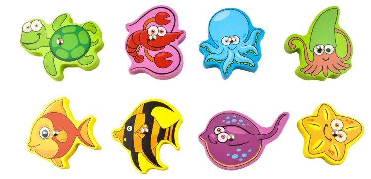 1. 8 ūdens dzīvnieki ar metāla tapām
