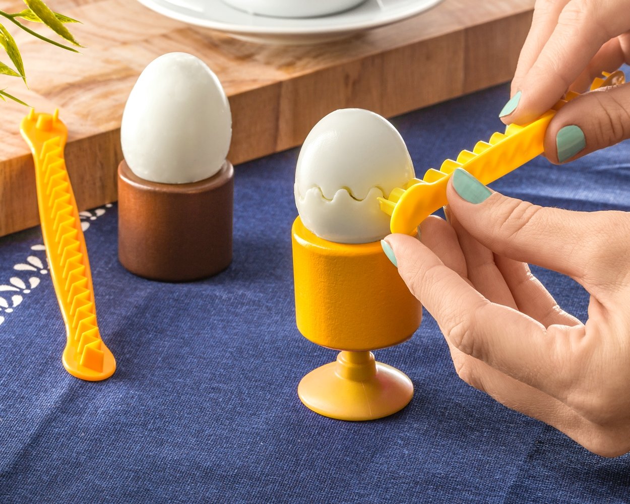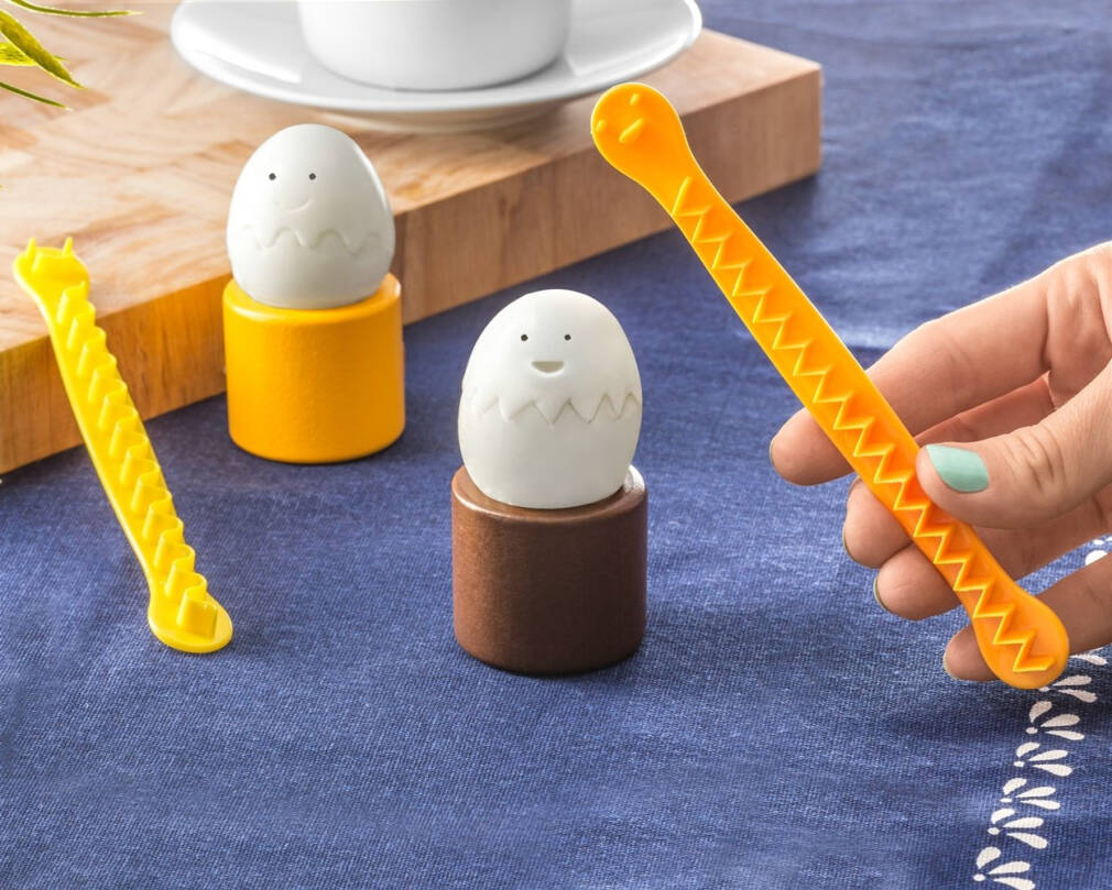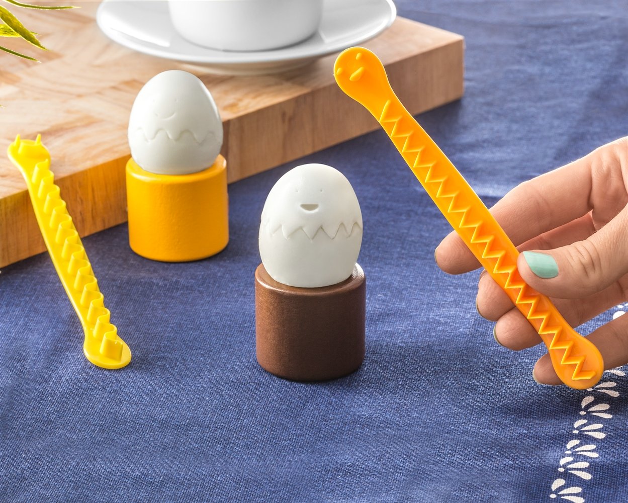 Olas ir veselīgas un garšīgas, bet, godīgi sakot, arī garlaicīgas :), sagādājiet jautrību un smaidu olu pasniegšanā un ēšanā ar mūsu jautrajiem griezējiem. Tā lietošana ir ļoti vienkārša, vienkārši uzlieciet griezēju uz cieti vārītas un nomizotas olas un viegli piespiediet to, lai iegūtu smieklīgu rakstu, piemēram, unikālu viļņainu vai robainu tekstūru. Izmantojiet griezēja galu, lai izveidotu smaidīgu seju, jūs varat izrotāt ar pipariem vai sezama sēklām, lai acis būtu redzamākas :) Pagatavojiet brokastīs gardas vārītas olas, kas ir labs sākums ģimenei vai viesiem. Funkcijas: - smieklīgi vārītu olu griezēji - 2 komplekts - izgatavots no PP pārtikas silikona - ar diviem atšķirīgiem rakstiem un smaida galiem - netoksisks - viegli un viegli; smieklīgi lietojams - viegli tīrāms - iepakots blistera kartē - izturīgs & amp; ilgstošs