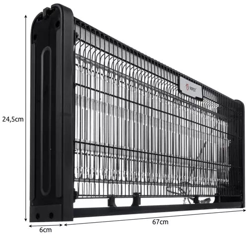 Jaudīga UV insekticīdā lampa kukaiņiem - insekticīda lampa ir ierīce, kas paredzēta, lai pievilinātu un iznīcinātu kukaiņus, piemēram, odus, mušas, kodes, lapsenes, kodes un citus kaitinošus kukaiņus. Jaudīga un efektīva - kukaiņu iznīcinātāji ir populāri vietās, kur kukaiņi var būt traucēklis, piemēram, mājās, dārzā, restorānos, viesnīcās, tirgus stendos, veikalos un citās sabiedriskās vietās. Repest lampa ir jaudīga un efektīva! Tā darbojas pat 40° platībā. Daudzas montāžas iespējas - lampai ir 3 montāžas iespējas. To var tradicionāli uzstādīt, pieskrūvējot pie sienas uz āķiem (nav iekļauti), iespēja pakārt uz ķēdes, kas ir iekļauta komplektā, un nolikt. Droša - kukaiņu iznīcinātāji ir droši cilvēkiem un mājdzīvniekiem. Tiem nav nepieciešama spēcīgu ķīmisku vielu lietošana un tie neizraisa toksisku izgarojumu izplatīšanos. Specifikācija - lampas modelis: UVA; noņemami režģi: jā; jauda: 40 W; spriegums: 1600 V; materiāls: tērauds+PP+ABS; darbības diapazons: 30-40°; kabeļa garums: 1,2 m; ķēdes garums: 67 cm; Izmēri: 67x6x24,5 cm; svars: 1,454 kg; svars iepakojumā: 1,958 kg. Specifikācija: lampas modelis: UVA; noņemami režģi: jā; jauda: 40 W; spriegums: 1600 V; materiāls: tērauds+PP+ABS; darba diapazons: 30–40 °C; vada garums: 1,2 m; ķēdes garums: 67 cm; izmēri: 67x6x24,5 cm; svars: 1,454 kg; svars iepakojumā: 1,958 kg; iekļauta lampas ķēde. Kukaiņu iznīcinātāja lampa darbojas ļoti vienkāršā veidā. Kukaiņiem atskaites punkti ir gaisma, piemēram, spuldzes mājā. Lampā izmantotajai UVA gaismai piemīt kukaiņus pievilinošas īpašības. Pēc saskares ar iekšpusē esošo režģi kukainis ātri un nāvējoši tiek pakļauts elektrotraumai. Brīdinājuma saturs: 1. Pārliecinieties, ka kukaiņu iznīcinātājs atrodas bērniem un mājdzīvniekiem nepieejamā vietā. Ievērojiet atbilstošu attālumu, lai izvairītos no nejaušas pieskaršanās. 2. Nenovietojiet lampu slēgtās telpās, kur cilvēki uzturas ilgu laiku, lai izvairītos no nejaušas saskares ar elektrotīklu. 3. Darbinot lampu, neturiet nospiestas pogas vai slēdžus, lai izvairītos no nejaušas ieslēgšanas. 4. Regulāri notīriet kukaiņu iznīcinātāju no beigtiem kukaiņiem un uzturiet to tīru. 5. Ja jums ir mājdzīvnieki, pārliecinieties, vai kukaiņu iznīcinātājs ir novietots tiem grūti aizsniedzamā vietā, lai izvairītos no nejaušas pieskaršanās. 6. Nelietojiet lampu mitrās vietās, lai izvairītos no elektrības bojājumiem.