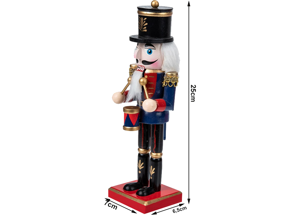 Riekstkodis – dekoratīva Ziemassvētku figūriņa – 25 cm. Ienesiet savās mājās Ziemassvētku burvības pieskārienu ar šo klasisko koka riekstkodi kareivja formā! Šis neparastais rotājums ne tikai piesaistīs visu jūsu viesu uzmanību, bet arī piešķirs jūsu interjeram svētku, pasaku atmosfēru. Tas būs lieliski piemērots kā dekoratīvs elements viesistabā, uz kamīna vai zem Ziemassvētku eglītes, uzsverot Ziemassvētku svētku noskaņu. Riekstkodis ir izgatavots no masīvkoka, kas garantē šī rotājuma izturību un stabilitāti. Smalki izstrādātās detaļas un ar rokām krāsotā apdare padara katru gabalu unikālu. Tā ir īsta meistarība, kas priecēs aci vēl daudzus gadus. Meklējat unikālu dāvanu Ziemassvētkos? Riekstkodis ir lieliska ideja! Tas ir klasisks Ziemassvētku rotājums, kas noteikti iepriecinās Ziemassvētku rotājumu cienītājus. Lieliski piemērots gan mīļajiem, gan draugiem. Tehniskās specifikācijas? Produkta kods: ? Augstas kvalitātes meistarība ? Materiāls: koks ? Universāls ? Ziemassvētki ? Iepakota sarkanā kartona kastē ar lodziņu. Izmēri: ❄️ Kopējais augstums: ❄️ Pamatnes platums: Komplektā ietilpst: ? Pilnīgi jauns riekstkodis? Oriģinālais iepakojums