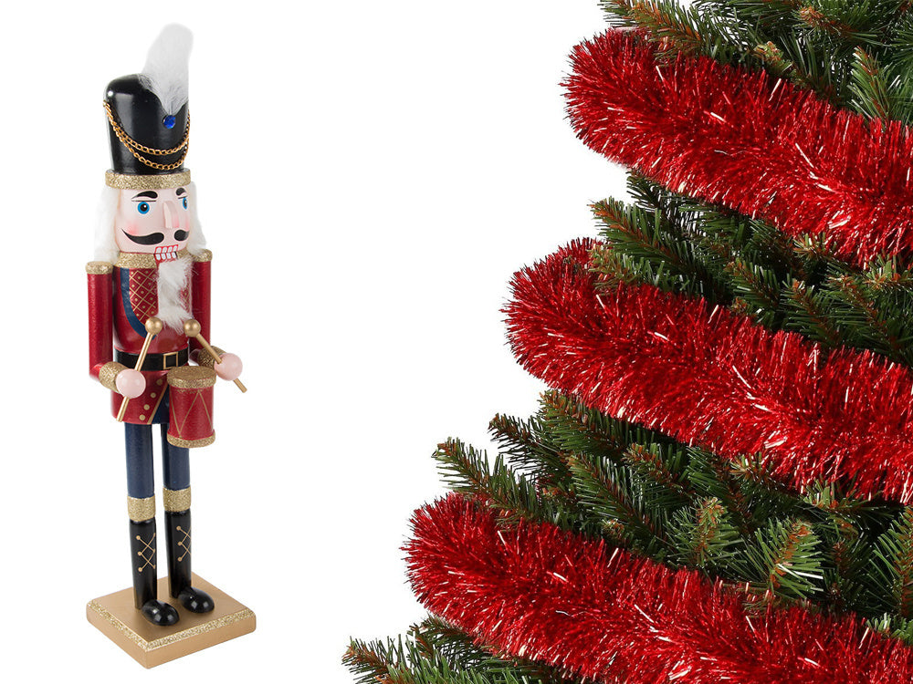 Riekstkodis – koka karavīriņa dekoratīvā Ziemassvētku dāvanu figūriņa – ienesiet savās mājās Ziemassvētku burvības pieskārienu ar šo klasisko koka riekstkodi karavīriņa formā! Šis neparastais rotājums ne tikai piesaistīs visu jūsu viesu uzmanību, bet arī piešķirs jūsu interjeram svētku, pasaku atmosfēru. Tas būs lieliski piemērots kā dekoratīvs elements viesistabā, uz kamīna vai zem Ziemassvētku eglītes, uzsverot Ziemassvētku svētku noskaņu. Riekstkodis ir izgatavots no masīvkoka, kas garantē šī rotājuma izturību un stabilitāti. Smalki izstrādātās detaļas un ar rokām krāsotā apdare padara katru gabalu unikālu. Tā ir īsta meistarība, kas priecēs aci vēl daudzus gadus. Meklējat unikālu dāvanu Ziemassvētkos? Riekstkodis ir lieliska ideja! Tas ir klasisks Ziemassvētku rotājums, kas noteikti iepriecinās Ziemassvētku rotājumu cienītājus. Lieliski piemērots gan mīļajiem, gan draugiem. Tehniskās specifikācijas – augstas kvalitātes meistarība – materiāls: koks – universāls – svētku – augstums: – pamatnes izmēri: komplektā ietilpst: – riekstkodis