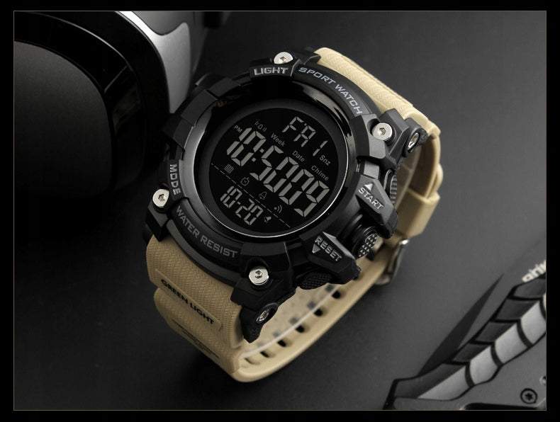 Pulkstenis izgatavots, pienācīgi rūpējoties par īstiem vīriešu aksesuāru cienītājiem. Krāsas izvēlētas tā, lai pulkstenis uzreiz piesaistītu uzmanību un pārsteigtu ar savu vīrišķo raksturu. Gumijas siksna un kvalitatīvi izgatavots korpuss nodrošina augstu valkāšanas komfortu. Ciparnīca skaidri parāda visus datus, un smalks zaļš luminiscējošais fona apgaismojums ļauj visu redzēt naktī un piešķir elektroniskajiem pulksteņiem raksturīgo šarmu.