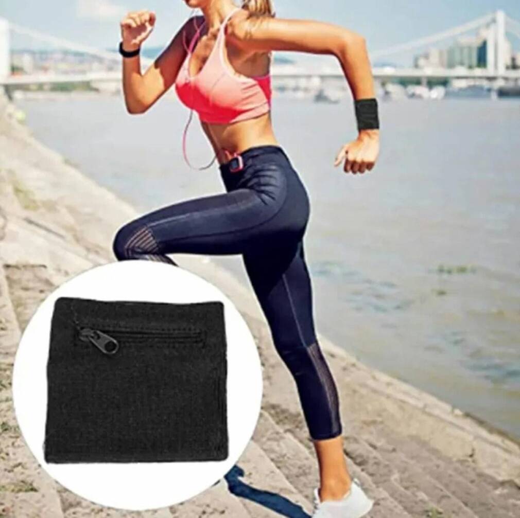 Šī ir sporta aproce. Tā ir ļoti noderīga, jo tai ir maza kabata ar rāvējslēdzēju, kurā varat glabāt lietas. Tas ir izgatavots no materiāla, kas ļauj jūsu ādai elpot, kas ir lieliski, jo neļauj jūsu rokām svīst, kad nodarbojaties ar sportu.
