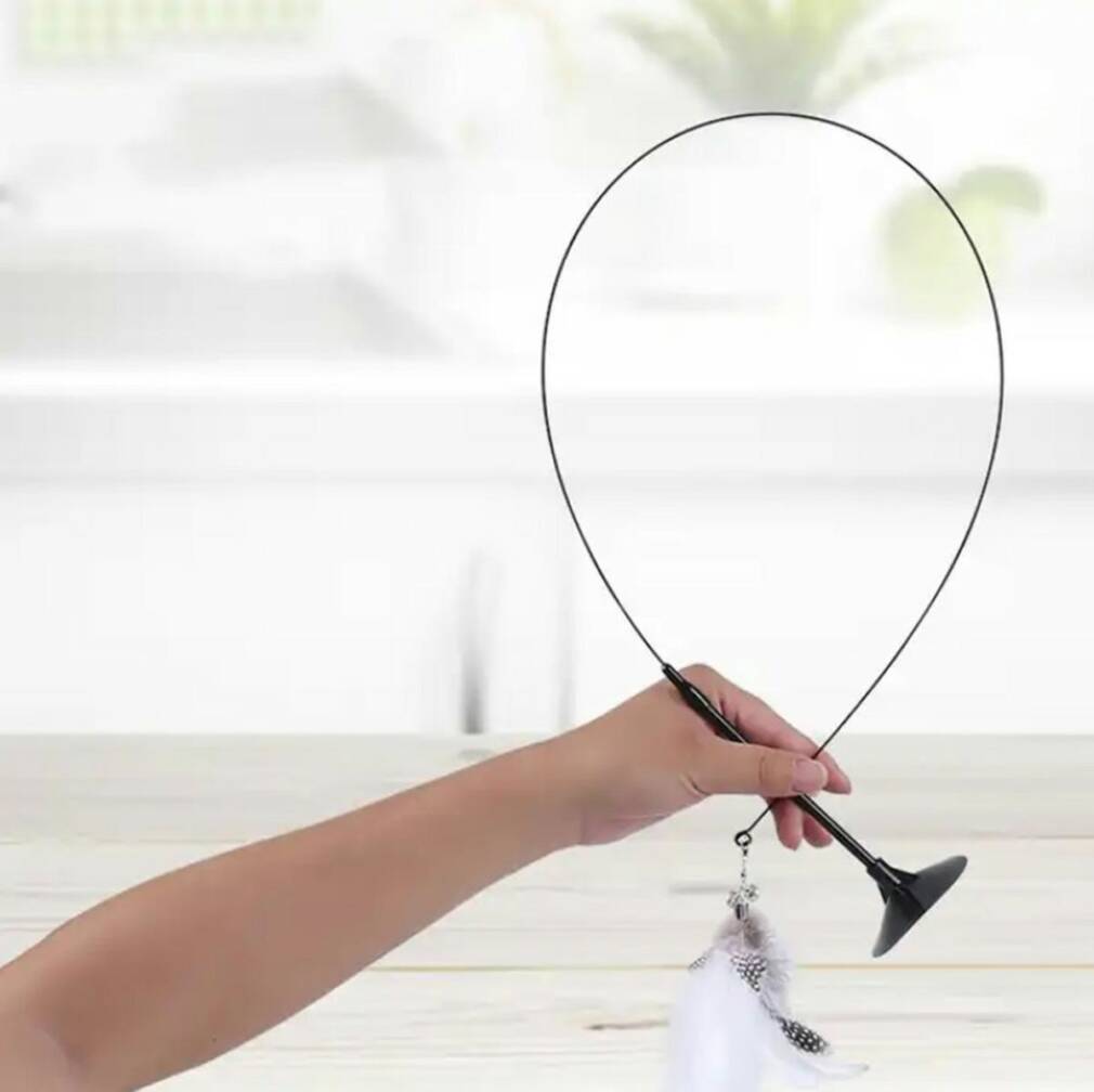 Tam ir spēcīga piesūceknis, kas pielīp pie virsmām, un un galā atrodas rotaļlieta, kurai ir spalvas un zvaniņš. Padomājiet par to kā par putnu — tas plīvo un zvana, lai piesaistītu jūsu kaķa uzmanību. Tas ir lielisks veids, kā parādīt kaķa medību prasmes. Turklāt šī lieta ir izturīga, taču viegla!