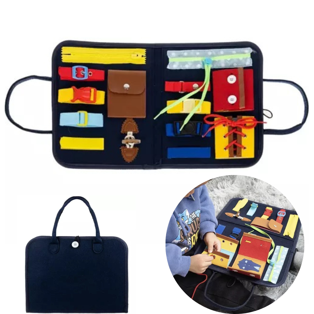 Daudzpusīga rotaļlieta, kas atbalsta jūsu bērna attīstību, vienlaikus sniedzot nebeidzamu jautrību. Izgatavota no viegla filca, šī soma ir salokāma un to var paņemt līdzi jebkur. Tai ir 14 dažādi elementi, piemēram, rāvējslēdzējs, sprādze un aizdares, kas palīdz attīstīt roku-acu koordināciju un loģisko domāšanu.