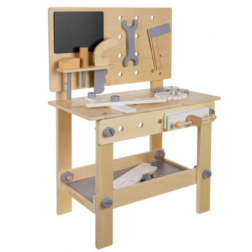 Koka darbnīca - pirmais solis lieliem projektiem! Attīstiet mazos rokdarbniekus ar koka darbnīcu, kas pilna ar instrumentiem! Lielisks komplekts mācībām rotaļājoties - drošs, radošs un lieliski piemērots mazām rociņām. Iedvesmojiet darbību ar instrumentiem, kas vienlaikus māca un rotaļājas! Dāvanas ideja - darbnīca ar instrumentiem mazajiem DIY entuziastiem, dāvanas ideja bērniem vecumā no 3 līdz 7 gadiem Jūsu bērna drošībai - komplekts ir izstrādāts, domājot par pašu jaunāko drošību, katrs elements ir noapaļots un izgatavots no dabīgiem, netoksiskiem materiāliem, kas ir droši mazajām rociņām Izturība - darbnīca un koka instrumenti ir īpaši izturīgi un noturīgi pret intensīvu spēlēšanos, pateicoties to stabilajai konstrukcijai, tie kalpos daudzas stundas radošas spēlēšanās Raisa bērnu interesi - koka darbnīca ir ne tikai rotaļlieta, bet arī izglītojošs līdzeklis, kas attīsta koordināciju, iztēli un roku prasmes, katrs bērns atradīs kaut ko interesantu, sākot no skrūvju griešanas līdz skrūvju pievilkšanai Izglītojoša vērtība - darbnīca ir lielisks veids, kā mācīties caur spēlēšanos, bērni attīsta roku prasmes, iemācās risināt problēmas un būt pacietīgiem, kas pozitīvi ietekmē viņu attīstību Ekoloģija un ietekme uz vidi - darbnīca ir izgatavota no ekoloģiska koka un videi draudzīgiem materiāliem, padarot to par atbildīgu izvēli Jūsu bērnam un planētai Komplekta cena - ieguldījums koka darbnīcā ir ieguldījums Jūsu bērna attīstībā, izturībā un izglītojošajā vērtībā Vai tas ir rotaļlieta, kas kalpos gadiem ilgi un ir savas cenas vērta? Mēs cenšamies cītīgāk, tāpēc darbnīcu nostiprinājām ar burbuļplēvi un iepakojām transportēšanas kastē. Pateicoties burbuļplēvei un izturīgai transportēšanas kastei, darbnīca jūs sasniegs drošībā un perfektā stāvoklī. ? Komplekta specifikācijas: izmēri: 67 x 26 x 45 cm; svars: 1,37 kg; svars iepakojumā: 1,67 kg; Materiāls: koks, MDF; komplektā ietilpst: darbnīcas plakanais skrūvgriezis, leņķa kronšteins, zāģis, āmurs, uzgriežņu atslēga, skrūvspīles, dēļi ar caurumiem x 4, skrūve x 11, uzgrieznis x 6, montāžas komplekts. Brīdinājums: saturs: brīdinājums. Nav piemērots bērniem līdz 36 mēnešu vecumam. Sīkas detaļas. Aizrīšanās risks. Produkti nav piemēroti lietošanai uzturā. Nepakļaujiet skarbajiem laikapstākļiem un ugunij. Lietojiet paredzētajam mērķim. Neignorējiet ieteikumus attiecībā uz lietotāja vecumu. Nelietojiet bojātu produktu. Montāžai nepieciešams pieaugušais. Neglabājiet nesaliktas detaļas vietās, kur bērni tām var piekļūt. ? Iepakojums nav rotaļlieta. Rotaļlietu drīkst izpakot pieaugušais. Lai izvairītos no nosmakšanas riska, turiet maisiņus un iepakojumu bērniem nepieejamā vietā. 1. Regulāri pārbaudiet darbnīcas un instrumentu stāvokli. Nelietojiet produktu, ja kāda detaļa ir bojāta. 2. Rotaļlieta jānovieto uz stabilas virsmas. 3. Iemāciet bērniem, kā droši lietot instrumentus, izskaidrojot, kam tie paredzēti un kā tos turēt. 4. Lietojiet pieaugušo tiešā uzraudzībā.
