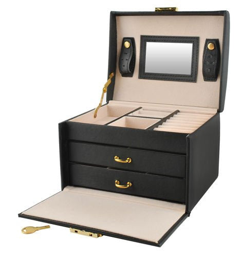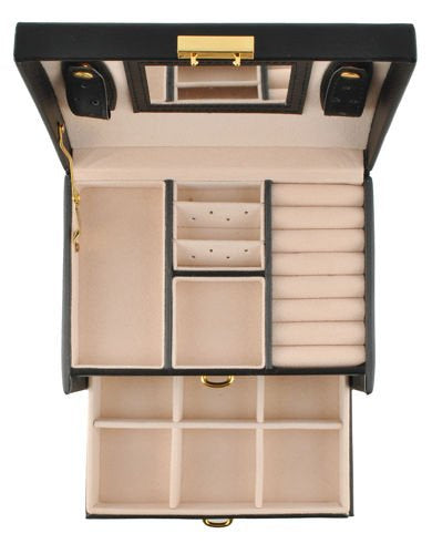 Satīna rotaslietu lādīte ir ietilpīga – pateicoties 20 dažādiem nodalījumiem un padziļinājumiem, maciņš palīdzēs jums perfekti sakārtot savu rotaslietu kolekciju. Aizslēdzama ar atslēgu – pateicoties komplektā iekļautajai atslēgai, varam būt pārliecināti, ka neviens cits nelietos kastīti, neskatīsies uz to un neaizņemsies rotaslietas; tā ir papildu aizsardzība vērtīgiem priekšmetiem. Droša rotaslietām – nodalījumi ir izklāti ar mīkstu materiālu, lai pasargātu smalkus un vērtīgus priekšmetus no skrāpējumiem. Elegants – mūžīgs dizains, jauka forma un zelta elementi piešķir maciņam klasi; estētisks, pievilcīgs izskats. Specifikācija – krāsa: melna; materiāls: PU pārklājums, MDF konstrukcija, citi: kartons, papīrs, stikls, neausts audums, flanelis, EVA putas, PP, metāla elementi; aizvērtas kastītes izmēri: 17,542 cm; svars: 643 g; Svars iepakojumā: 733 g specifikācija: krāsa: melna materiāls: PU pārklājums, MDF konstrukcija, citi materiāli: kartons, papīrs, stikls, neausts audums, flanelis, EVA putas, PP, metāla elementi slēgtā kastes izmēri: 17,542 cm svars: 643 g svars iepakojumā: 733 g iekļauta bagāžnieka atslēga kastīte ļaus jums rūpēties par savām rotaslietām perfektā stilā, nodrošinot aizsardzību pret bojājumiem, kā arī skaisti tās izliks apskatei. izmantojiet šim nolūkam īpaši izstrādātu produktu un izbaudiet perfekti organizētas un drošas vērtslietas vienuviet.