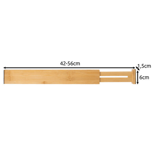 Atvilktņu organizators, regulējams nodalījums, bambusa nodalījums, 4 daļas atvilktņu organizēšanai! Izturība un kvalitāte – starpsiena ir izgatavota no augstas kvalitātes bambusa, kas nodrošina ilgmūžību un izturību ikdienas lietošanā, pateicoties stabilajai konstrukcijai, jums nav jāuztraucas par ātru nodilumu vai bojājumiem. Ideāli piemērots telpas organizēšanai – pateicoties regulējamam dizainam, sadalītājs ir piemērots dažādām atvilktnēm, palīdzot viegli organizēt nelielus priekšmetus, tas ir lielisks risinājums virtuvei, birojam vai guļamistabai, kur kārtība ir galvenais. Drošība un komforts – putu malas aizsargā atvilktni no skrāpējumiem, vienlaikus novēršot organizatora kustību, kas nodrošina stabilitāti un kārtību katrā atvilktnē. Papildu vieta – pateicoties nodalījumu izmantošanai, jūs varat maksimāli izmantot pieejamo vietu atvilktnē, palielinot tās ietilpību un atvieglojot nelielu priekšmetu glabāšanu vienuviet. Teleskopiskais mehānisms – atvilktnes sadalītājs ļauj viegli pielāgot atvilktnes un plauktu izmērus dažādiem izmēriem, kas nodrošina elastību un perfektu atbilstību jūsu uzglabāšanas vajadzībām. Viegli tīrāms – atvilktnes sadalītāju ir viegli uzturēt tīru, vienkārši noslaukiet to ar mitru drānu, kas vienmēr liks tam izskatīties kā jaunam. Daudzpusīgs pielietojums: virtuve – galda piederumu, nažu, dakšiņu, trauku, šķīvju, bļodu un citu virtuves piederumu organizēšana. Vannas istaba – kosmētikas un aksesuāru uzglabāšana un organizēšana. Birojs – biroja piederumu, dokumentu organizēšana. Guļamistaba – rotaslietu, pulksteņu, briļļu, apģērbu, apakšveļas, zeķu un dvieļu glabāšana. Garāža – instrumentu organizēšana. Bērnu istaba – rotaļlietu organizēšana, apģērbu, autiņbiksīšu un bērnu aksesuāru glabāšana. Pieliekamais – pārtikas produktu organizēšana. Atdalītāju specifikācijas: palīdz uzturēt kārtību Teleskopisks Viegli saliekams Izgatavots no izturīga bambusa Krāsots baltā krāsā Universāls lietojums Iespēja pielāgot izmērus, vienkārši nospiediet uzgaļiem Aizsargāts ar eva putām Atdalītāju skaits: 4 Izmērs: 42 - 56 x 6 x 1,5 cm Svars: 1,1 kg Svars iepakojumā: 1 kg Ruhhy zīmols Krāsa: dabīgs bambuss Materiāls: bambuss + eva putas Komplektā iekļauts: 4 teleskopiski atdalītāji brūna kartona kaste