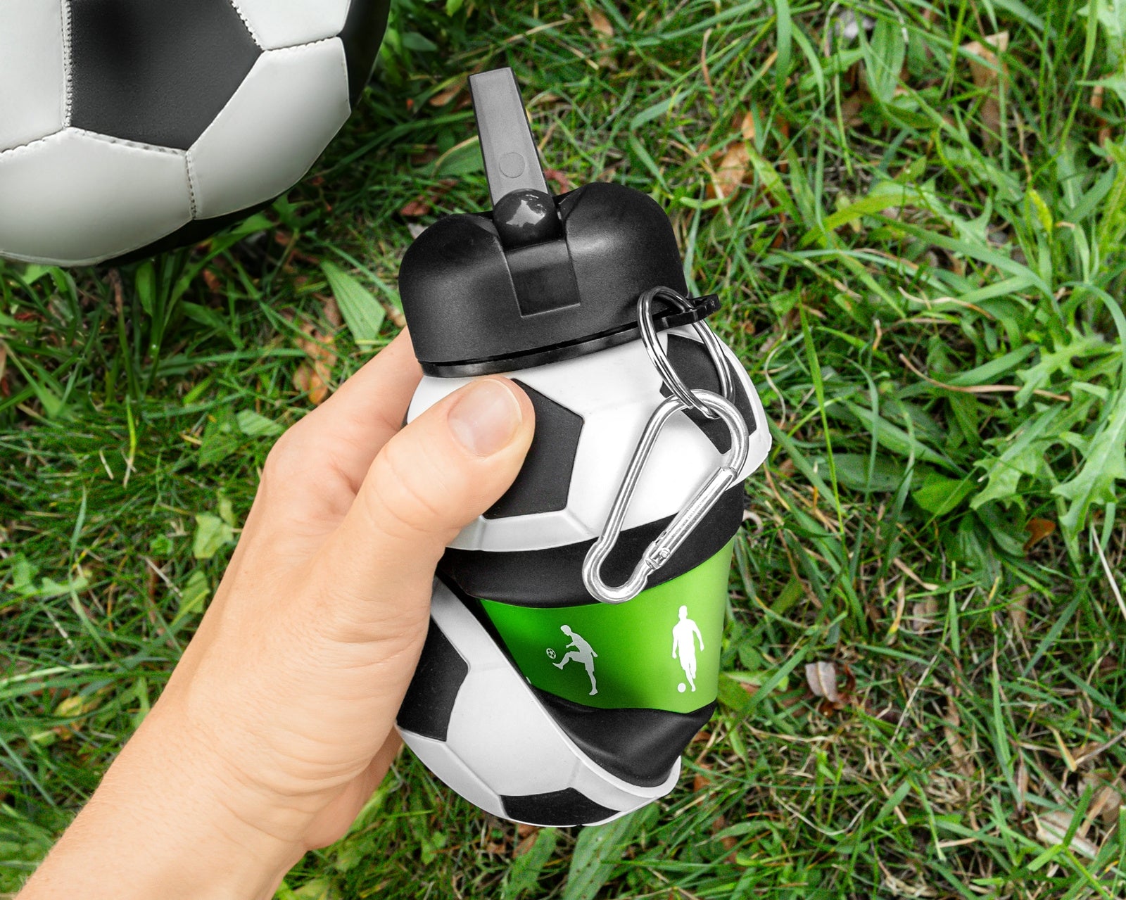 Salokāma silikona pudele ir ārkārtīgi foršs un praktisks risinājums aukstiem dzērieniem, kas ir ideāli piemērots sportistiem, studentiem vai tūristiem. Hidratācijas uzturēšana ir ļoti svarīga jebkuras aktivitātes laikā, gan telpās, gan ārpus tām, tāpēc vienmēr ir labi turēt pa rokai ūdens, izotoniska dzēriena vai cita hidratācijas avota pudeli. Mūsu pudele ir elastīga, ļaujot to dažu sekunžu laikā pēc tukšas iztukšošanas salocīt mazā izmērā, aizņemot minimālu vietu. Ar praktisku karabīni to var viegli piestiprināt pie jostas, somas vai mugursomas. Tagad mūsu ūdens pudele piedāvā personalizāciju — varat izmantot ūdensnecaurlaidīgu marķieri, lai uz silikona lentes uzrakstītu savu vārdu vai kluba nosaukumu. Tās dāsnā ietilpība, aptuveni 550 ml, remdēs slāpes skolā, treniņa laikā, ceļojumā vai pārgājienā. Pievilcīgais sportiskais dizains noteikti piesaistīs jūsu draugu skaudīgos skatienus. Mūsu pudele ir izgatavota no augstas kvalitātes pārtikas kvalitātes silikona, kas ir drošs, netoksisks un neuzsūc smakas. To ir viegli uzturēt tīru, pateicoties plašajai atverei, kas padara mazgāšanu un uzpildīšanu par vieglu uzdevumu. Vāciņam ir salokāms, ērts dzeršanas snīpis. Izmantojot mūsu pudeli, jūs arī aizsargājat vidi, izvēloties atkārtoti lietojamu pudeli, nevis vienreizlietojamu. Īpašības: saliekama silikona pudele ar ērtu snīpi aukstiem dzērieniem; sportisks dizains ar karabīni ērtai piestiprināšanai pie biksēm vai mugursomas; uz silikona lentes ir iespēja personalizēt (piemēram, uzrakstīt savu vārdu vai kluba nosaukumu), piemēram, ar ūdensnecaurlaidīgu marķieri; izgatavota no augstas kvalitātes pārtikas kvalitātes silikona; drošs, netoksisks, bez BPA un ftalātiem; ļoti praktiska un noderīga daudzās situācijās; ideāli piemērota skolai, treniņiem vai ceļojumiem; viegla, elastīga un kompakta; salocītā veidā tilpums līdz 550 ml; lieliska un praktiska dāvana visiem aktīviem bērniem; iekļauts krāsains dāvanu iepakojums.