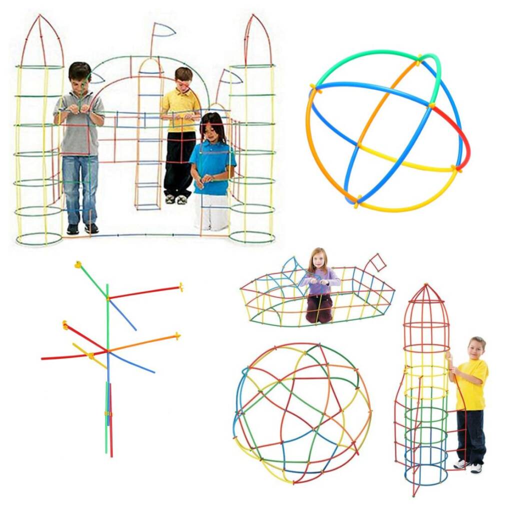 blokiem, viņi arī praktizē fokusēšanu un acu un roku koordināciju. Tā ir arī izcila dāvanu ideja. Turklāt tam ir pievienots īss ceļvedis, kurā parādīti piemēri tam, ko var uzbūvēt ar salmiņiem.