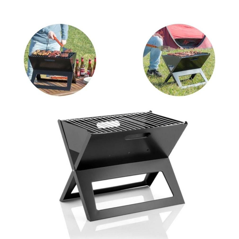 Šis ir pārnēsājams bārbekjū, ko var salocīt kā žurnālu plauktu. Tas ir