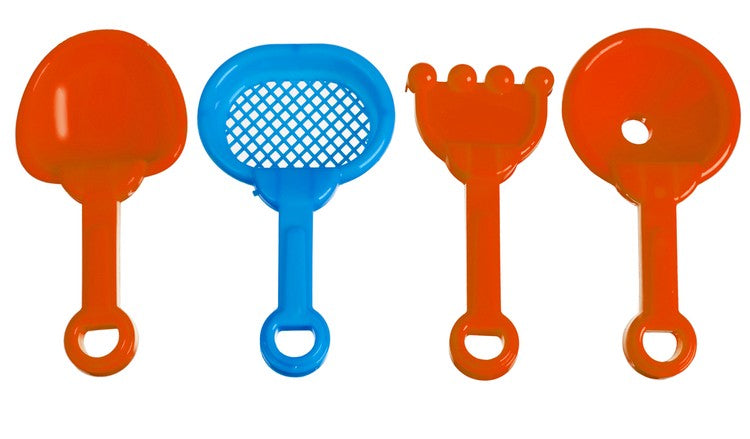 Komplektā ir 2 kg smilšu, 14 plastmasas veidnes, grābeklis, siets, lāpsta un piltuve. Iekļauta arī piepūšamā smilšu kaste, lai jūsu rotaļu laukums būtu kārtīgs.
