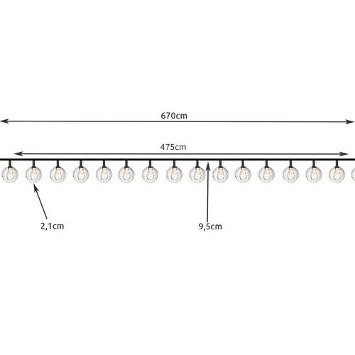 Dekoratīva saules vītne - bumbiņas, dekoratīvas bumbiņas ar augstas kvalitātes polistirolu. Saules LED vītne ir elegants un funkcionāls dekors, kas noteikti piešķirs šarmu jebkurai telpai. Tā sastāv no 50 bumbiņām, no kurām katra ir izgatavota no augstas kvalitātes polistirola. Šis materiāls ir ne tikai izturīgs, bet arī estētisks, padarot vītni par dekorāciju pat tad, kad tā netiek lietota. Katra bumbiņa ir nedaudz caurspīdīga un satur sīkus gaisa burbuļus, kas piešķir tai unikālu raksturu. Šie burbuļi ne tikai uzlabo bumbiņu izskatu, bet arī efektīvi izkliedē gaismu, kad vītne ir ieslēgta, radot patīkamu, siltu atmosfēru. Pateicoties krēslas sensoram, vītne, to neieslēdzot, sāk mirdzēt, tiklīdz kļūst tumšs. Silti dzeltena gaisma. Virtenes bumbiņas izstaro silti baltu gaismas krāsu, kas padara tās ideāli piemērotas atmosfēriska apgaismojuma radīšanai. Katra bumbiņa ir novietota 9,5 cm attālumā viena no otras, kas nodrošina vienmērīgu gaismas sadalījumu visā vītnes garumā. Virtenes pārdomāto dizainu papildina 700 cm garš tumši zaļš kabelis, kas lieliski saplūst ar apkārtējo vidi, kļūstot gandrīz nemanāms uz veģetācijas fona, ļaujot visu uzmanību pievērst mirdzošajām bumbām. Ūdensnecaurlaidīgs saules panelis Saules panelis, kas darbina virteni, ir ūdensnecaurlaidīgs, tāpēc tas ir ideāli piemērots lietošanai ārpus telpām neatkarīgi no laika apstākļiem. Aizmugurējā panelī ir slēdzis un poga apgaismojuma režīma maiņai. Virtene piedāvā līdz pat 8 dažādiem apgaismojuma režīmiem, tostarp pastāvīgu gaismu, mirgošanu, secīgu apgaismojumu un daudzus citus, kas ļauj pielāgot tās darbību konkrētajam gadījumam un noskaņojumam. Saules paneļa pilnīga uzlāde aizņem aptuveni 6 stundas, pēc tam virtene var spīdēt 8 stundas, nodrošinot ilgstošu apgaismojumu, kas pavadīs jūs visa vakara garumā. Kustīgs rokturis un stabils stiprinājums Saules panelis ir uzstādīts uz kustīga roktura, ko var regulēt un nostiprināt ar spēcīgu skrūvi, lai tas nemainītu pozīciju, kas ļauj to novietot optimālā pozīcijā, lai maksimāli izmantotu saules starus akumulatora uzlādēšanai. Paneļa stiprinājums sastāv no divām daļām - apakšējā daļa beidzas ar radzi, kas atvieglo tā ieduršanu zemē vai podā. Šis praktiskais risinājums ļauj stabili uzstādīt paneli dažādās vietās gan dārzā, gan uz balkona, gan uz terases. Specifikācija: materiāls: PS, ABS, PVC, silikons; krāsa: silti balta; apgaismojuma režīmu skaits: 8; attālums starp bumbiņām: 9,5 cm; saules panelis: 3 V 600 mAh; akumulators 600 mAh; ūdensizturība: IP44; bumbiņu skaits: 50; uzlādes un darba laiks: 6 stundas; kopējais garums: 700 cm; kabeļa garums ar fona apgaismojumu: 475 cm; bumbiņas diametrs: 2,1 cm; svars: 0,450 kg; Svars iepakojumā: 0,512 kg Specifikācija: Materiāls: PS, ABS, PVC, silikons Krāsa: silti balta Apgaismojuma režīmu skaits: 8 Attālums starp bumbiņām: 9,5 cm Saules panelis: 3V 600mAh 600mAh akumulators Ūdensizturība: IP44 Bumbiņu skaits: 50 Uzlādes darba laiks: 6 h Kopējais garums: 700 cm Kabeļa garums ar fona apgaismojumu: 475 cm Bumbiņas diametrs: 2,1 cm Svars: 0,450 kg Svars iepakojumā: 0,512 kg Komplektā iekļauts: lampas Saules panelis Kājas iesms LED saules virteni var izmantot daudzās dažādās vietās un dažādiem gadījumiem. Tā ir lieliski piemērota kā dekorācija dārzā, radot maģisku atmosfēru vasaras vakaros. To var pakārt starp kokiem, uz pergolas vai lapenes, kas piešķirs šarmu jebkuram dārzam. Balkoniem un terasēm virtenis radīs mājīgu atmosfēru, kas ir ideāli piemērota atpūtai pēc grūtas dienas. Saules lampu vītne ar LED apgaismojumu ir ne tikai praktisks, bet arī stilīgs rotājums, kas jebkurā telpā piešķirs unikālu atmosfēru, un tās daudzpusība un daudzās priekšrocības padara to par lielisku izvēli lietošanai dārzā, uz terases vai balkona. Brīdinājuma saturs: 1. Nekad neremontējiet saules lampas paši. Bojājuma gadījumā, lūdzu, sazinieties ar speciālistu. 2. Nelietojiet saules lampas vietās ar augstu temperatūru, piemēram, krāsnīs vai atklātas liesmas tuvumā. 3. Saules lampu uzglabāšana mitrās vietās var sabojāt ierīci. Ieteicams tās uzglabāt sausā un vēsā vietā. 4. Regulāri pārbaudiet saules lampu stāvokli un tīrību, lai izvairītos no iespējamām darbības problēmām. 5. Neaizsedziet saules lampas saules paneļus, jo tas var ietekmēt to efektivitāti un kalpošanas laiku. 6. Ieteicams saules lampas uzstādīt uz stabilas virsmas, lai tās neapgāztos vētras vai spēcīga vēja laikā. 7. Ja rodas problēmas ar saules lampām, piemēram, pārkaršana, dzirksteles vai dūmi, nekavējoties izslēdziet tās un pārtrauciet lietošanu. 8. Vienmēr izlasiet un ievērojiet norādījumus par saules lampu drošu lietošanu.