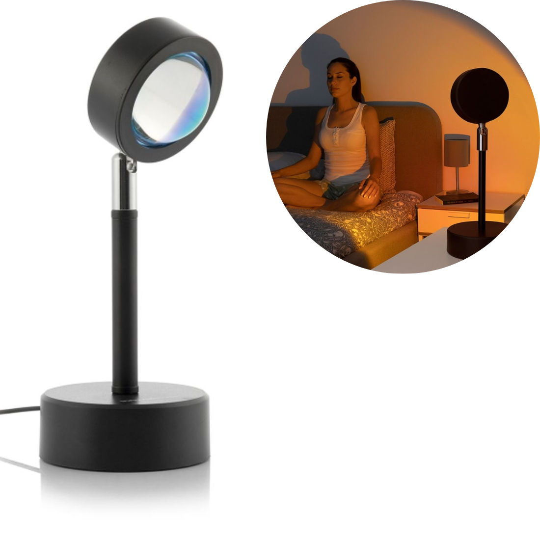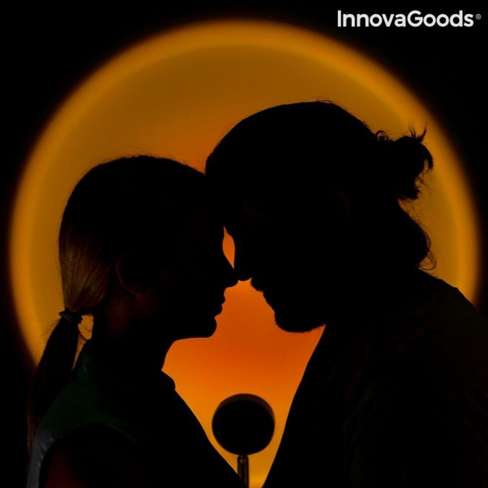 Oriģināla projektora lampa ar saulrieta efektu, kas izstaro ļoti maigu un relaksējošu siltu LED gaismu, projicējot oranžu sfēru, līdzīgi kā saules atspīdums saulrieta laikā. Pateicoties lampas daudzpusībai, tā ir lieliski piemērota daudzu dažādu telpu apgaismošanai. Tā imitē siltu saulrietu, radot īpašu un romantisku atmosfēru guļamistabā, viesistabā, darba kabinetā utt. Tā ir ideāli piemērota arī kā naktslampiņa bērniem vai kā gaisma fotografēšanai.