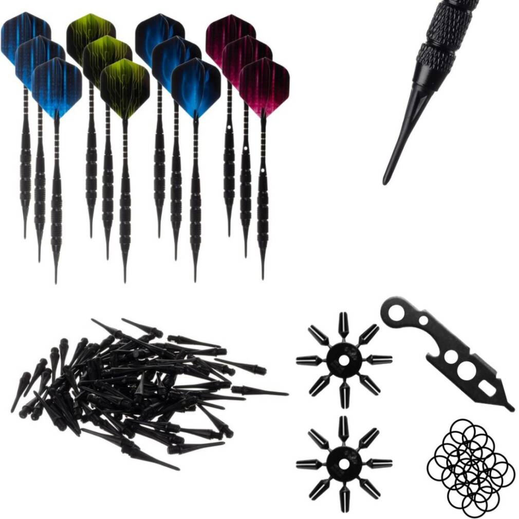 Iekšpusē atradīsiet 12 šautriņas, 100 mīkstos uzgaļus, 2 lidojuma aizsargus, 20 O