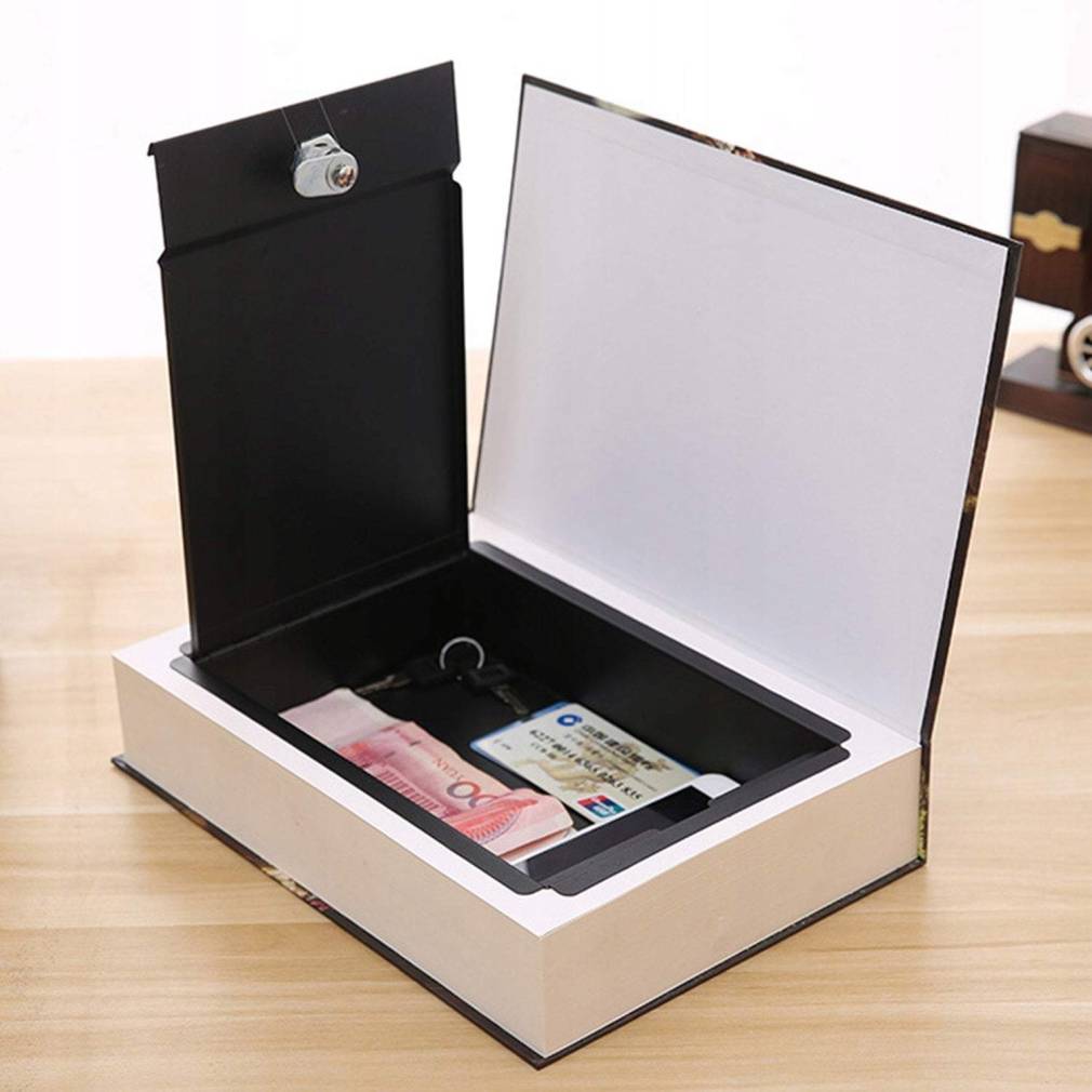 komplektā ietilpst grāmatu seifs un divas atslēgas ērtai piekļuvei.