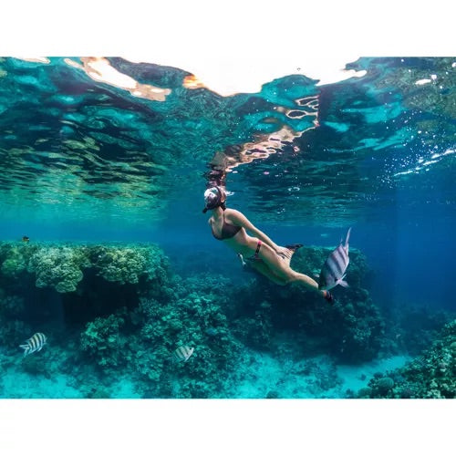 zemūdens izpēti vieglāku un jautrāku. Maska ļauj normāli elpot caur degunu un