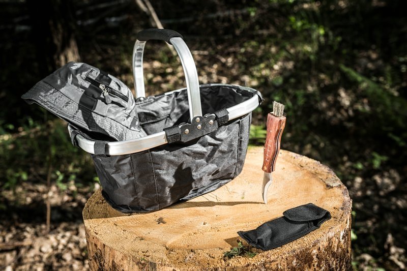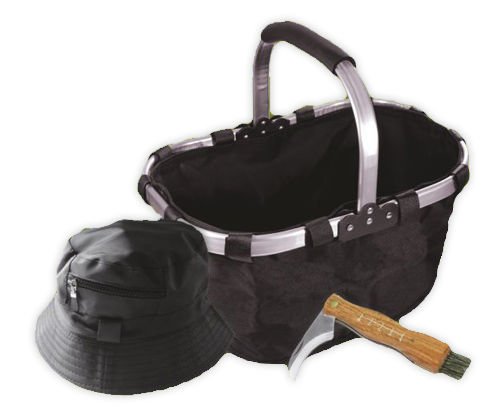 Lielisks un ļoti noderīgs komplekts visiem sēņotājiem. Viss nepieciešamais aprīkojums veiksmīgām sēņu medībām. Ūdensizturīga cepure, kas pasargās jūs no saules vai lietus, salokāms sēņu nazis ar mēru un otu, pretodu lente, lai odi netraucētu, un salokāms grozs sēnēm. Atlocīts naža izmērs: 13x2,5 cm. Groza izmērs: 35x21x25 cm.