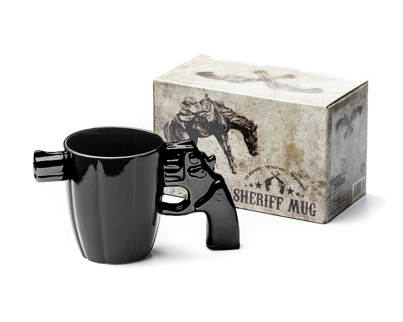 Ar mūsu jauno šerifa krūzi jūtieties kā īsts priekšnieks vai šerifs. Funkcijas: - porcelāna šerifa krūze ne tikai īstiem vīriešiem - krūze un sīkrīks jūsu darbvirsmai, lai parādītu, kas ir priekšnieks - krūzes krāsa melna un revolvera krāsa arī melna :) - jauka dāvanu krāsu kastīte