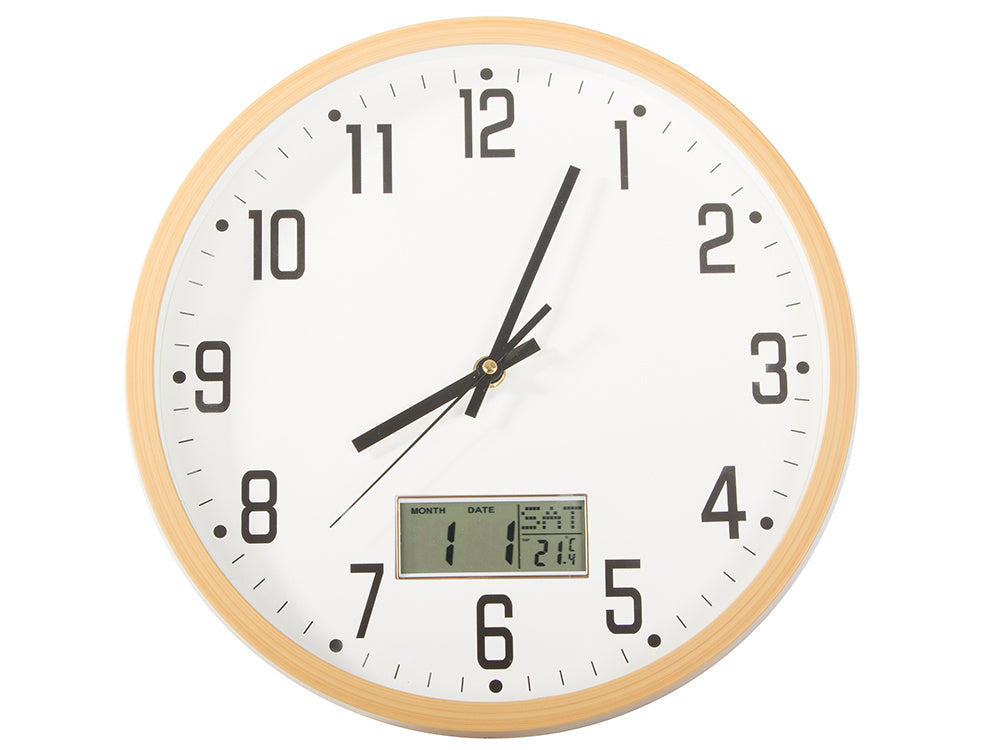 Sienas pulkstenis, liels, kluss, 30 cm, apaļš rādītājs, datums, temperatūra, sekundes