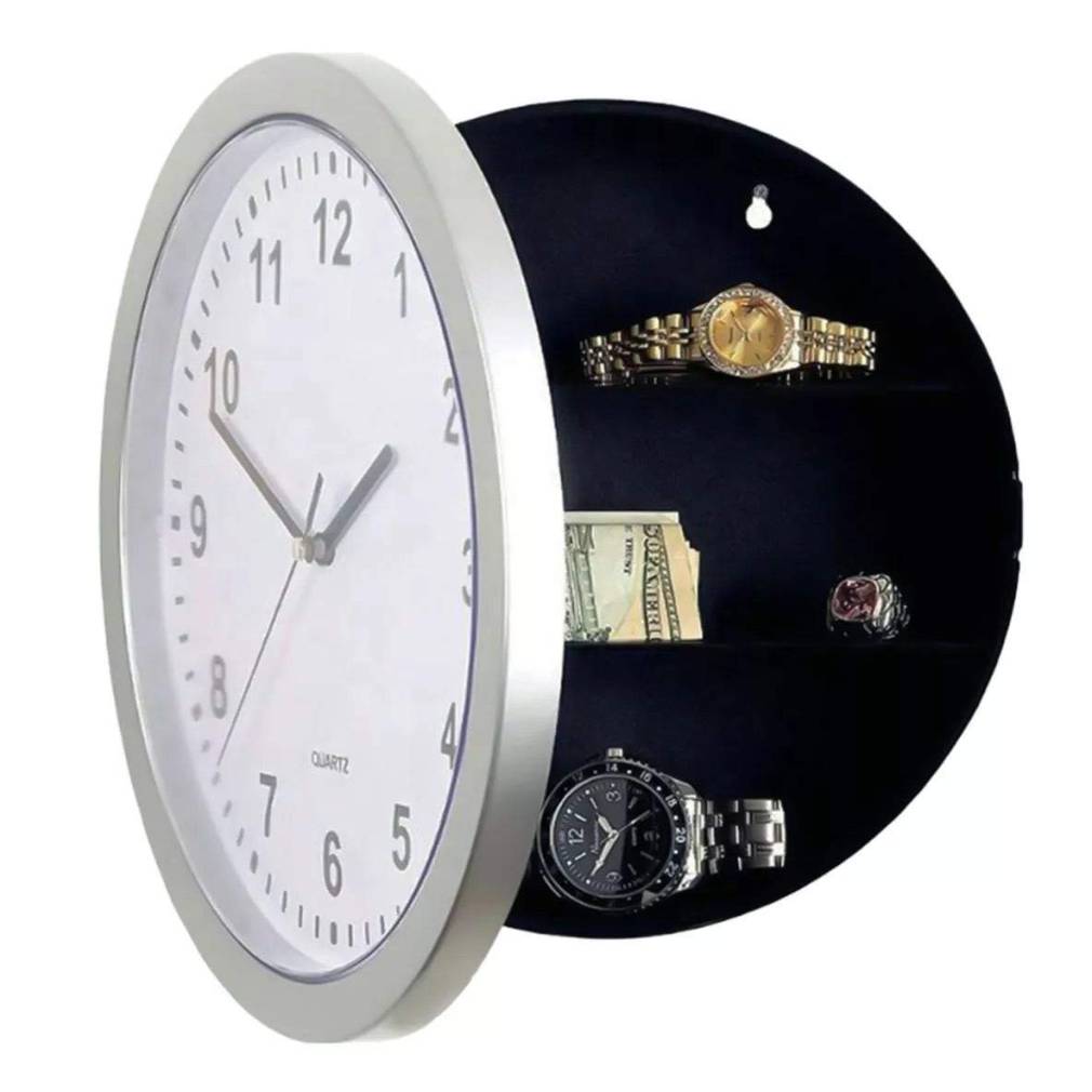 Klasisks sienas pulkstenis ar gudru glabāšanas nodalījumu. Tas ļauj gudri glabāt vērtslietas vienā no vairākiem nodalījumiem. Ērta atvēršana un aizvēršana bez koda ievadīšanas kā klasiskajā seifā. Skapja unikalitāte pasargās jūsu vērtslietas no zagļiem. No klasiskā sienas pulksteņa tas atšķiras tikai ar lielāku biezumu. Salasāma ciparnīca un lielie rādītāji atvieglos laika nolasīšanu - galu galā tas ir tikai parasts pulkstenis.