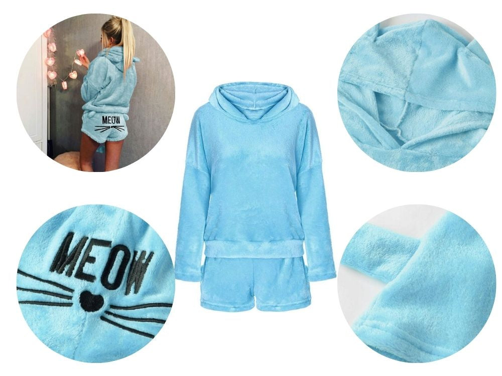 Silta sieviešu divdaļīga pidžama ar kapuci, mīksta plīša, īsa M izmērs