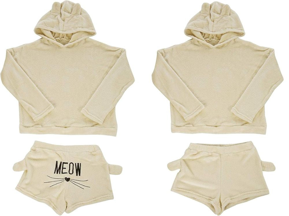 Silta sieviešu pidžama divdaļīga ar kapuci, mīksta plīša, īsa L izmēra