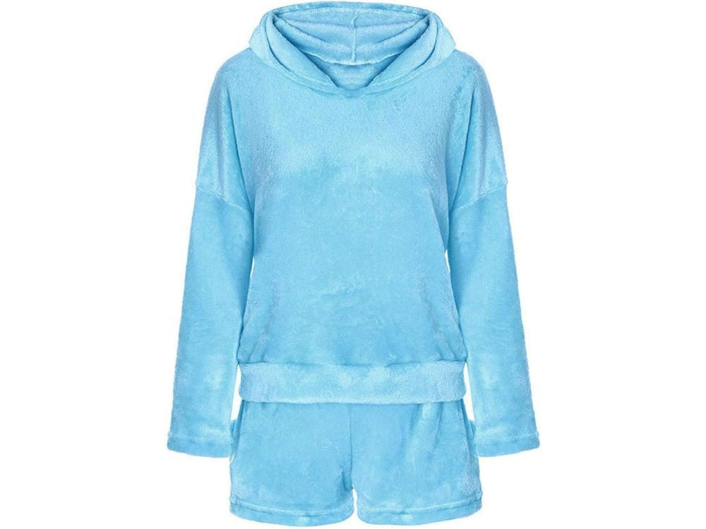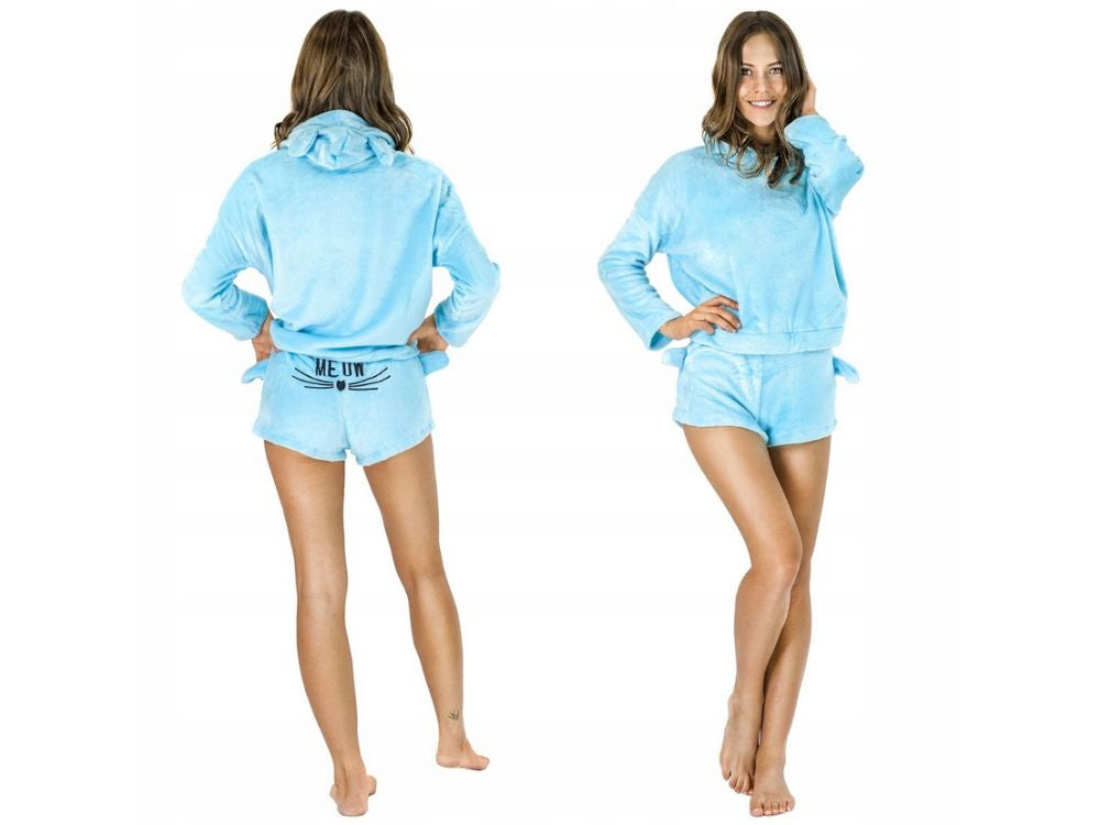 Silta sieviešu pidžama divdaļīga ar kapuci, mīksta plīša, īsa L izmēra
