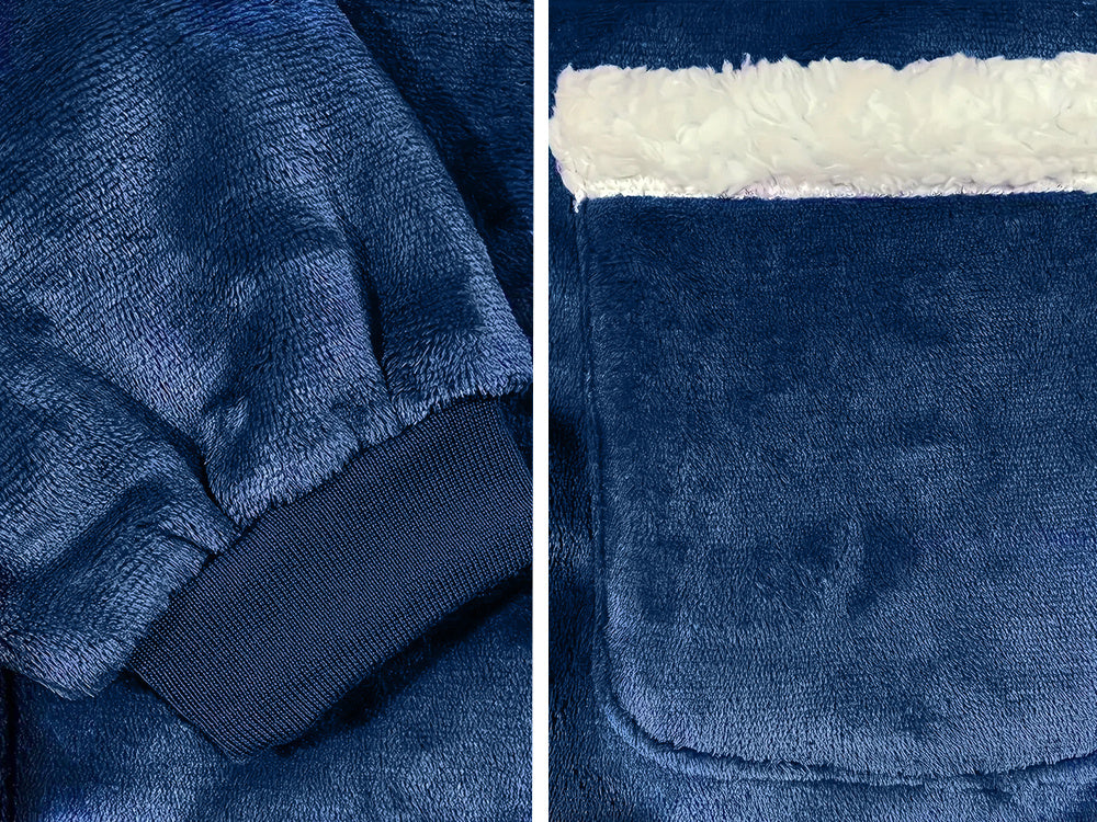 Silts sporta krekls ar segas efektu, liels, oversize, biezs, mīksts halāts ar kapuci, garš, XXL izmēra silts sporta krekls ar segas efektu, lieliski piemērots aukstām dienām un vakariem. Izgatavots no bieza, mīksta materiāla, tas nodrošina izcilu komfortu un mājīgumu. Tumši zilā krāsa piešķir daudzpusīgu un stilīgu pieskārienu, kas piemērots dažādiem gadījumiem. Tas ir piemērots gan pieaugušajiem, gan bērniem un nodrošina siltumu aukstās dienās, vakaros, ko pavada, skatoties filmu, pie kamīna vai uz terases. Tam ir divi nodalījumi, kuros var uzglabāt ērtus priekšmetus vai sasildīt rokas. Sporta kreklam ir praktiska kapuce papildu aizsardzībai pret aukstumu, un tā plašais piegriezums nodrošina pilnīgu kustību brīvību. To var izmantot gan kā halātu, gan kā virsdrēbes, atpūšoties mājās. Ideāli piemērots ietīšanai aukstās dienās, radot siltuma un komforta sajūtu. Tehniskās specifikācijas: ? Produkta kods: ? Mīksts un silts pieskārienam ? Plašas piedurknes, kas neierobežo kustības ? Ērts ? Liela kapuce ? Universāls izmērs ? Mazgājams veļas mašīnā ? Piemērots visiem ģimenes locekļiem ? Silts, 2 nodalījumi ? Krāsa: tumši zila ? Sastāvs: Izmēri: ? Piedurknes garums: ? Blūzes garums: ? Džempera platums: Uzmanību!!! Izmēri var atšķirties +/- līdz 1,5 cm atkarībā no auduma izmēriem. Komplektā ietilpst: ?? Džempera sega ?? Oriģinālais iepakojums