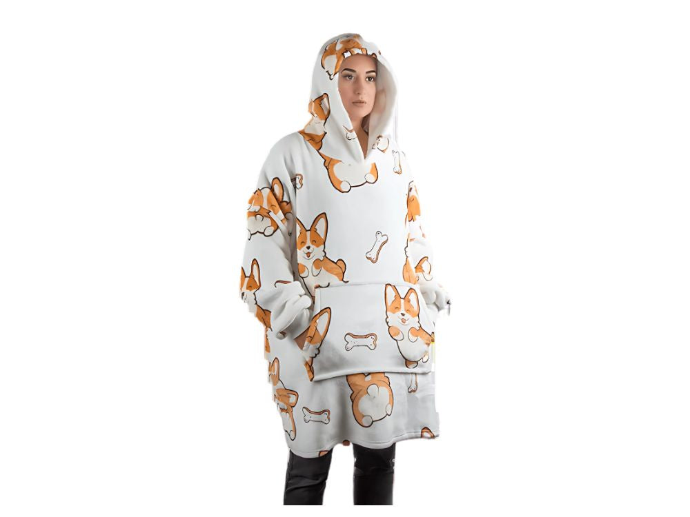 Silts suņu sporta krekls, liela izmēra sega XXL 2in1, bieza, mīksta kažokāda, ar kapuci. Siltais suņu sporta krekls ir ideāli piemērots cilvēkiem, kuri vēlas atpūsties siltumā pēc smagas darba dienas. Tas ir ideāli piemērots visiem salnajiem cilvēkiem, jo nodrošina siltumu un komfortu, skatoties televizoru, strādājot pie datora vai lasot iecienītāko grāmatu. Pateicoties platajām piedurknēm, tas nodrošina pilnīgu kustību brīvību. Piemērots gan pieaugušajiem, gan bērniem, tas uztur siltumu aukstās dienās, vakaros, skatoties filmu, pie kamīna vai uz terases. Tam ir liela, praktiska pārnēsājama soma ērtu priekšmetu glabāšanai vai roku sildīšanai. Sporta krekls ir izgatavots universālā izmērā un ir piemērots sievietēm, vīriešiem un bērniem. Mazgājams veļas mašīnā, tas saglabās svaigumu un kalpos daudzus gadus. Praktiskā kapuce sildīs galvu, pasargās no vēja un to var izmantot arī kā spilvenu. Izgatavots no samtaina un mīksta materiāla ar biezu lācīti iekšpusē. Piedurknes ar rievotu apakšmalu. Tehniskās specifikācijas: ? Produkta kods: ? Mīksts un silts pieskārienam ? Plašas piedurknes, kas neierobežo kustības ? Ērts ? Liela kapuce ? Universāls izmērs ? Mazgājams veļas mašīnā ? Piemērots visiem ģimenes locekļiem ? Krāsa: balta ? Sastāvs: Izmēri: ? Piedurknes garums, mērot no paduses: ? Garums no kakla līdz aproces galam: ? Blūzes garums: ? Džempera platums: ? Pārnēsājamais izmērs: ? Padušu platums: ? Blūzes apakšdaļas platums: ? Platums pie kakla: Uzmanību!!! Izmēri var atšķirties +/- līdz 2 cm atkarībā no auduma izmēriem. Komplektā ietilpst: ? Džemperis-suņu sedziņa ?? Oriģinālais iepakojums