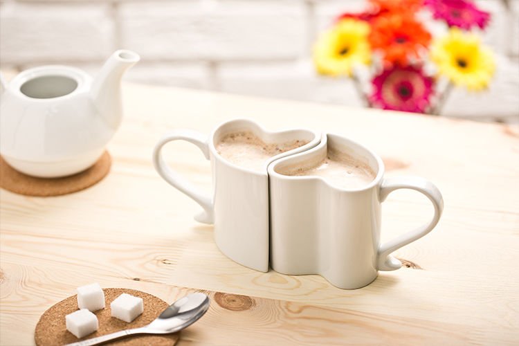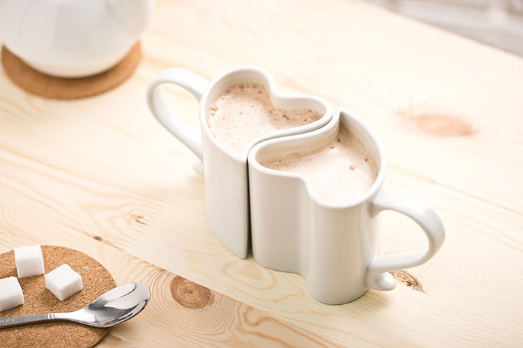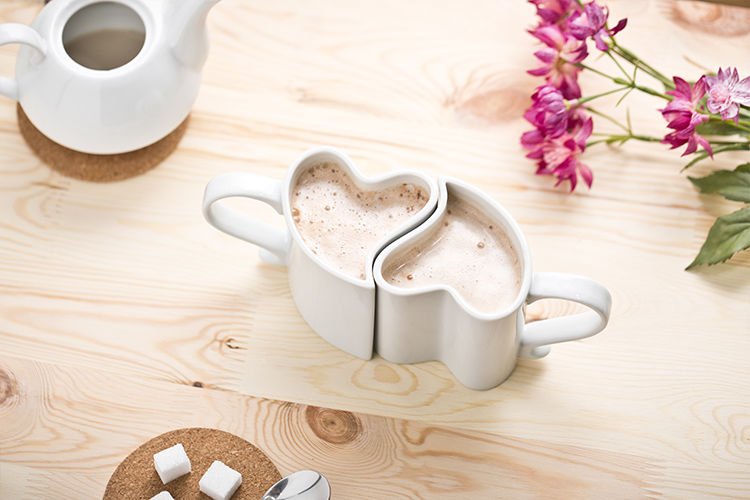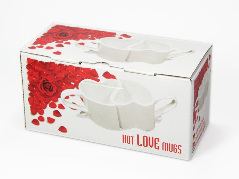 Maigs porcelāns, gluda virsma, sirds formas krūzes elegantā dāvanu kastītē ir unikāla dāvana.