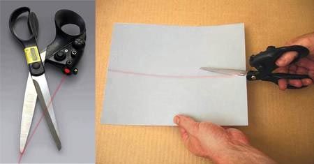 Šķēres ar lāzeri precīzi taisnām līnijām. Lieliski piemērotas papīra, folijas vai auduma griešanai. Lāzera krāsa: sarkana. Izmērs: garums 21 cm - blistera iepakojums