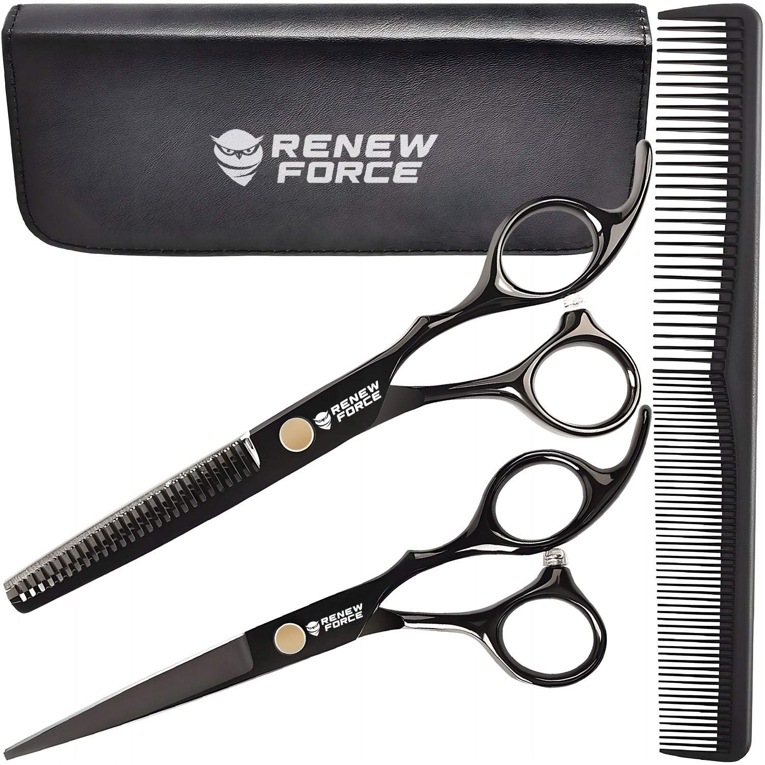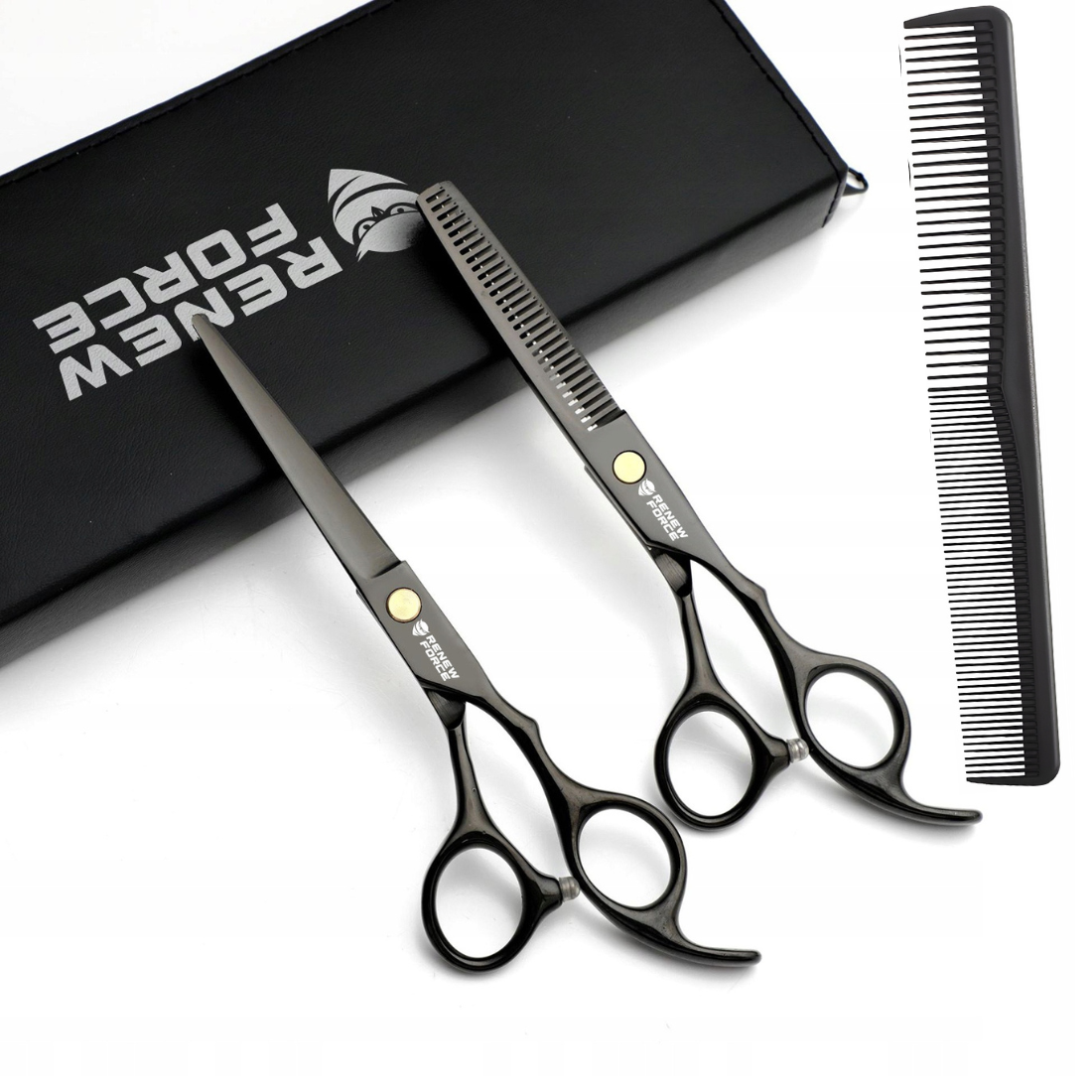 Šajā komplektā ietilpst griešanas šķēres, retināšanas šķēres un ķemme. Šķēres ir izgatavotas no augstas kvalitātes nerūsējošā tērauda, melnā krāsā.