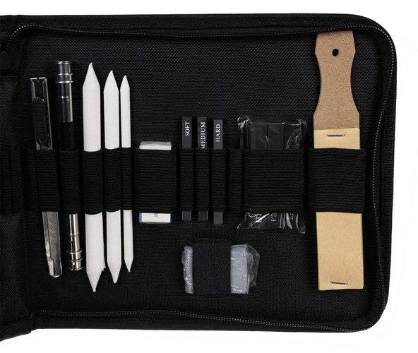 Šim skicēšanas komplektam ir stilīgs futrālis, lai viss būtu sakārtots. Korpuss