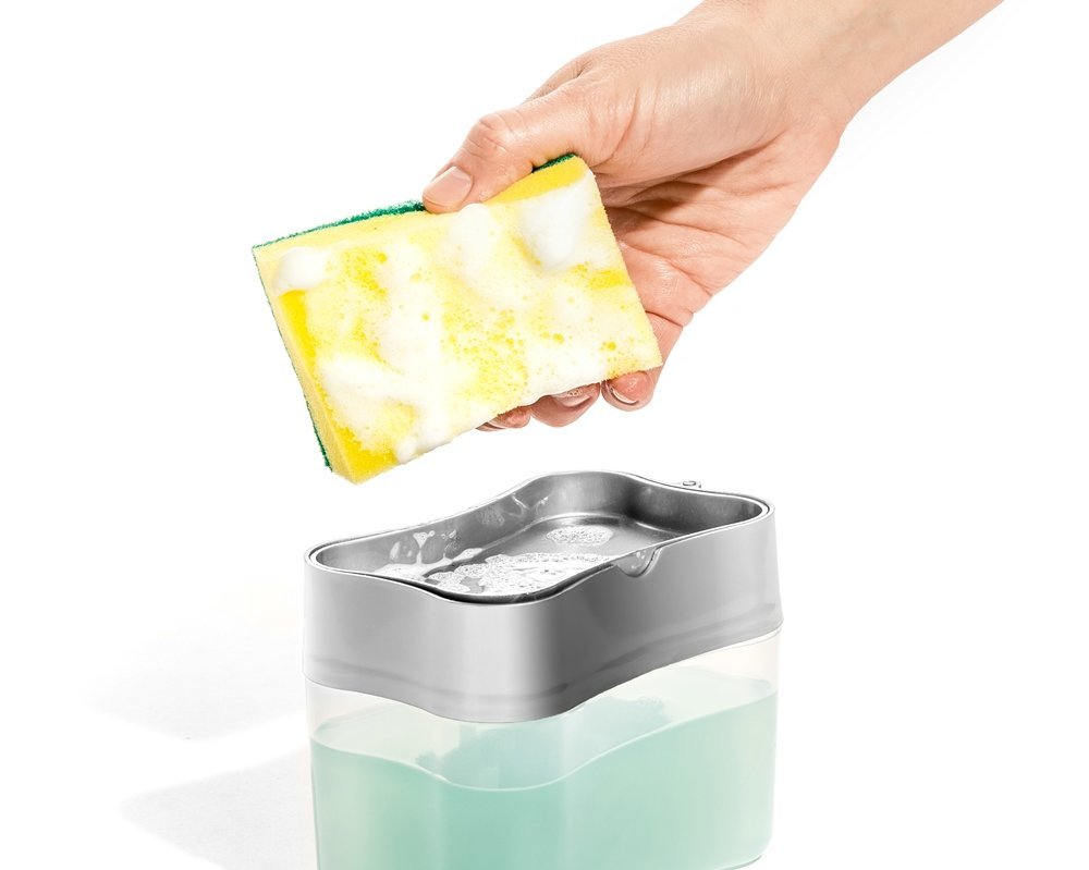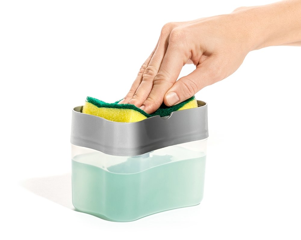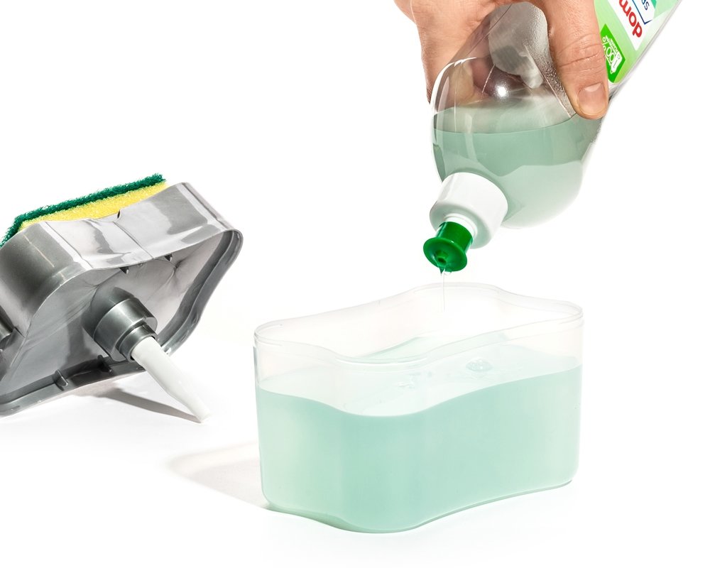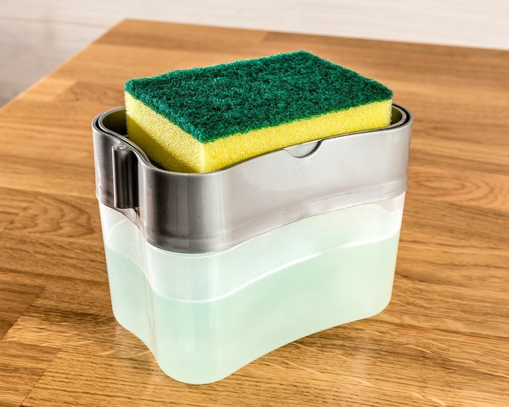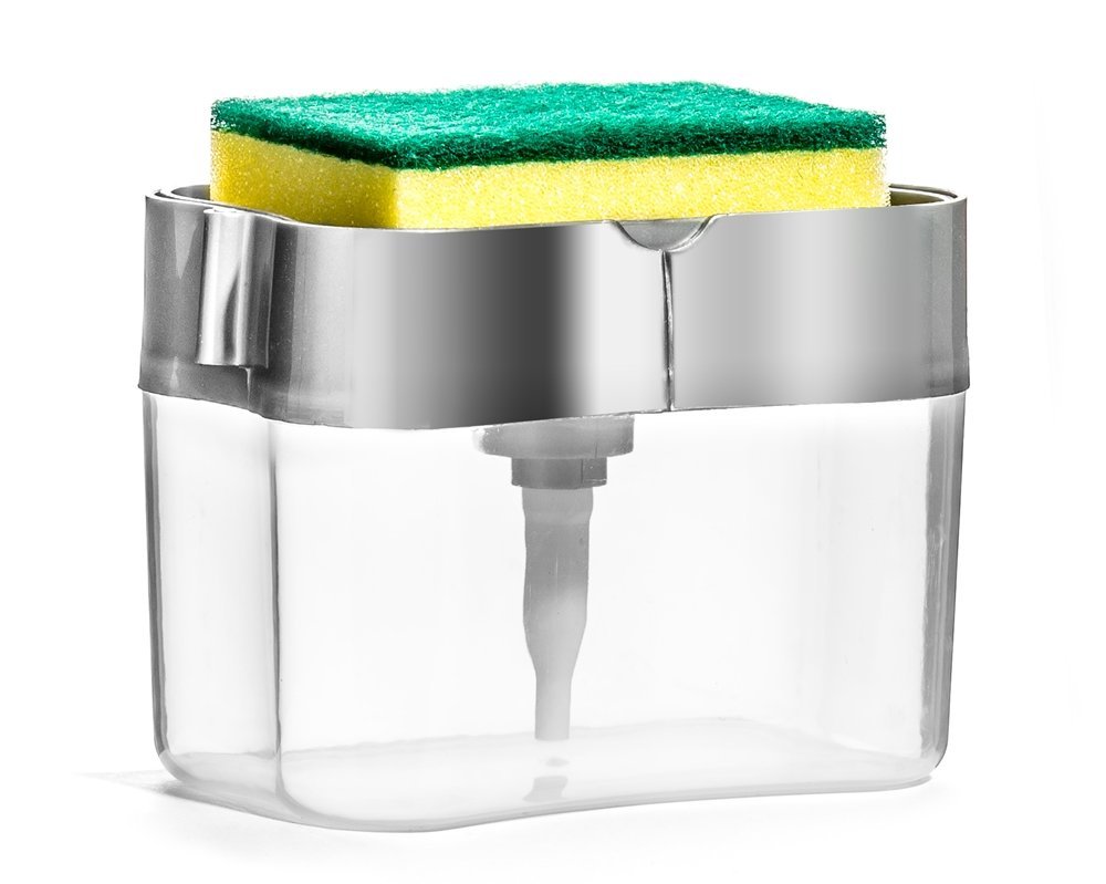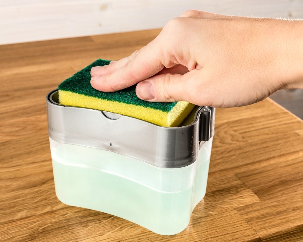 Jābūt katrai virtuvei! Praktisks šķidruma dozators ar sūkli un sūkļa turētāju. Vienkārši viegli nospiediet augšējo plāksni, lai šķidrums izdalītos tieši uz sūkļa. Tas uz sūkļa izsmidzinās ideālu trauku ziepju daudzumu. Tīrs un elegants risinājums, vairs nekādas nekārtības izlietnē :) Izlietnes dozators vienuviet ērtā vietā notur sūkļus, skruberi, lupatas, berzes spilventiņus. Funkcijas: - jauki un amp; praktisks virtuves šķidruma izlietnes dozators ar sūkli un sūkļa turētāju - sūklis ieskaitot (bez šķidruma) - laba ietilpība 385 ml - materiāls: ABS - krāsaina dāvanu kaste