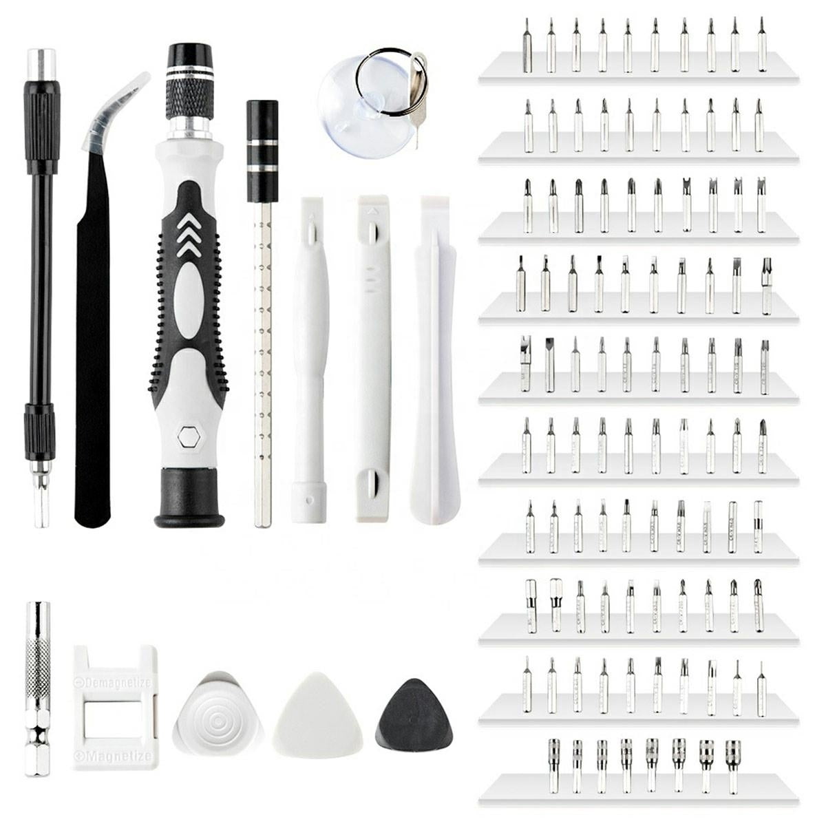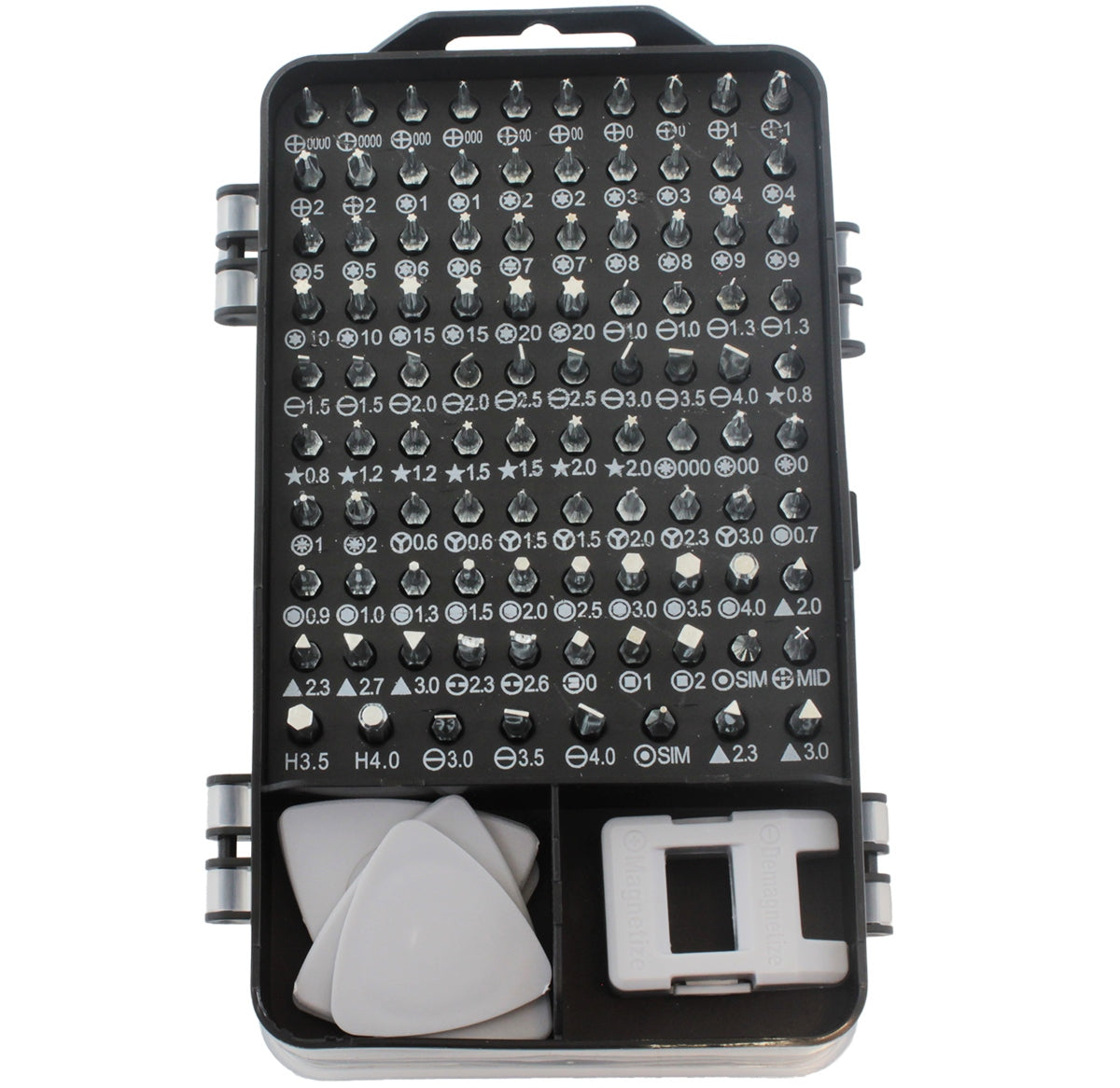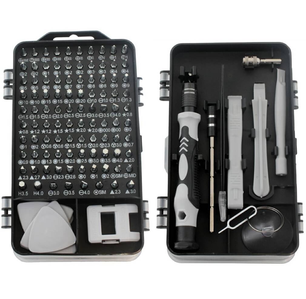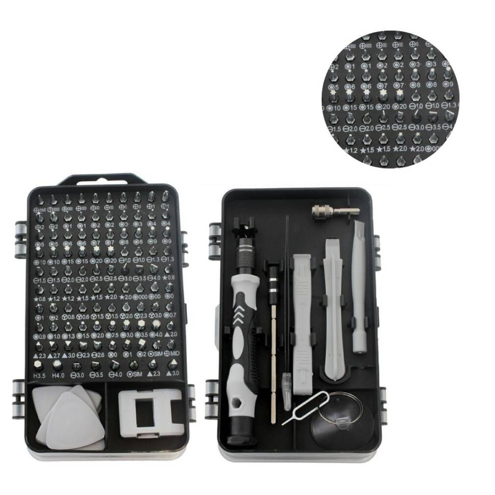 Šis ir daudzpusīgs 115 daļu skrūvgriežu komplekts, kas lieliski piemērots