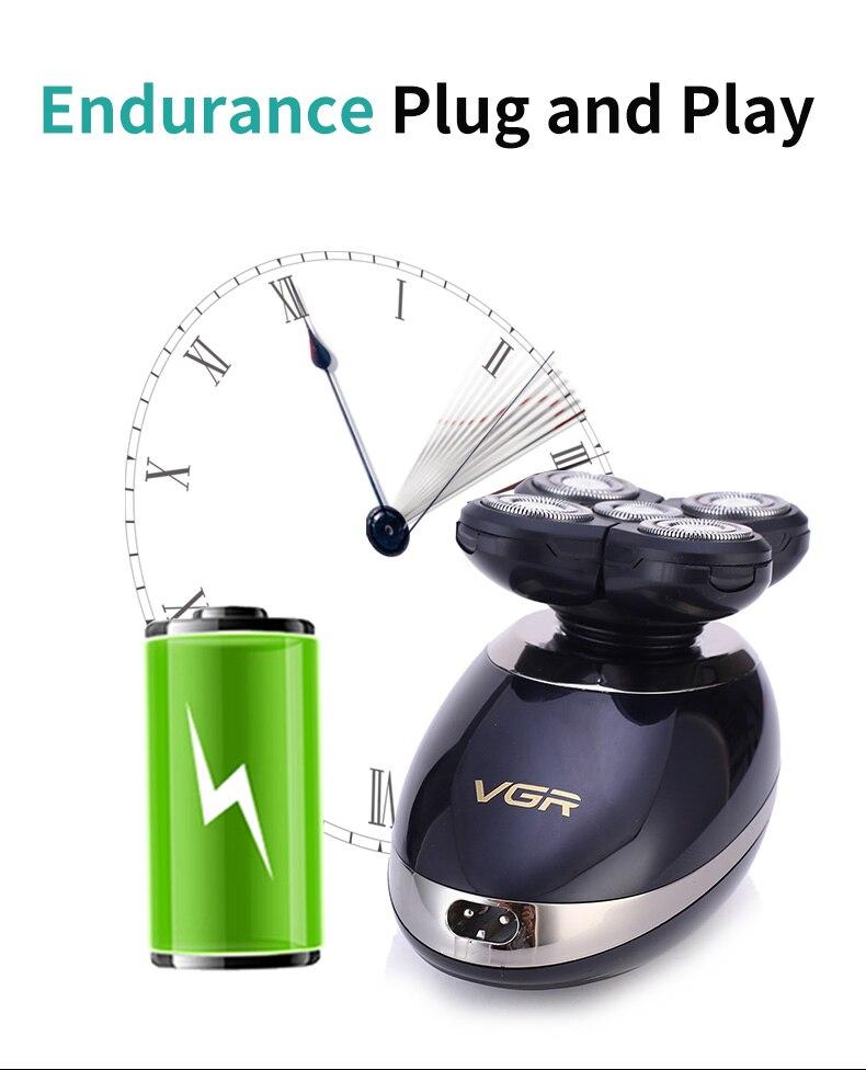 Mūsdienīgs VGR skuveklis ar akumulatoru. Iespējams izmantot kā mājās, tā, piemēram, arī ceļojumā.