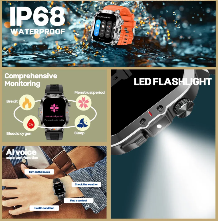 Ūdensizturīgs viedpulkstenis V17 ar iebūvētu lukturīti